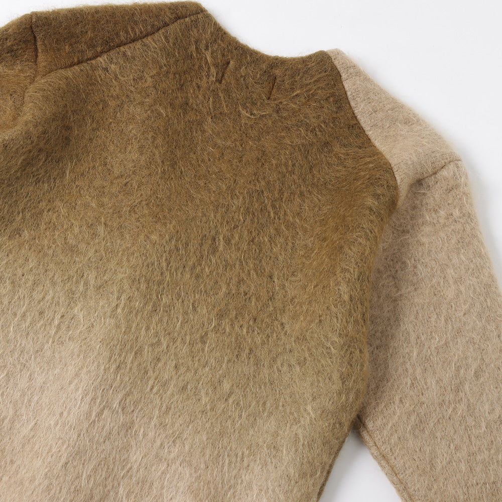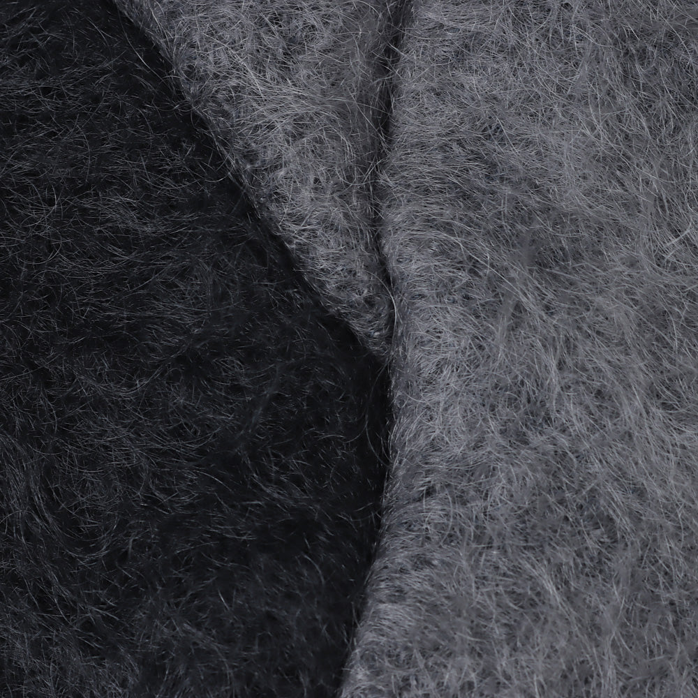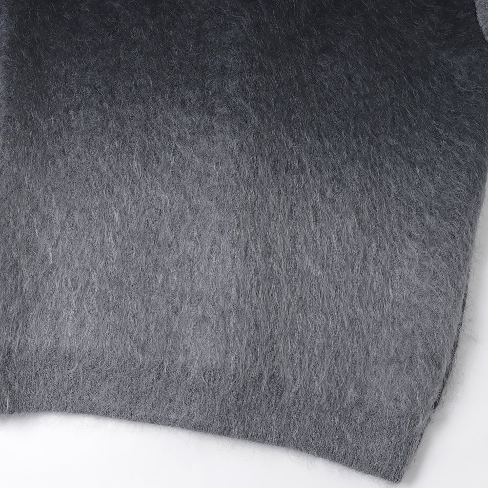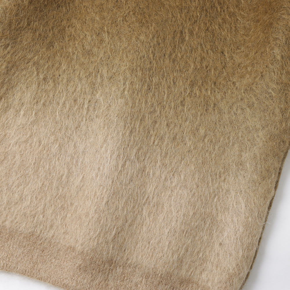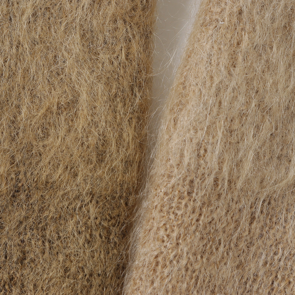 It is spun without blending in wool, and to take advantage of the characteristics of mohair, the fibers are carefully brushed to give it a long, supple, and glossy appearance.