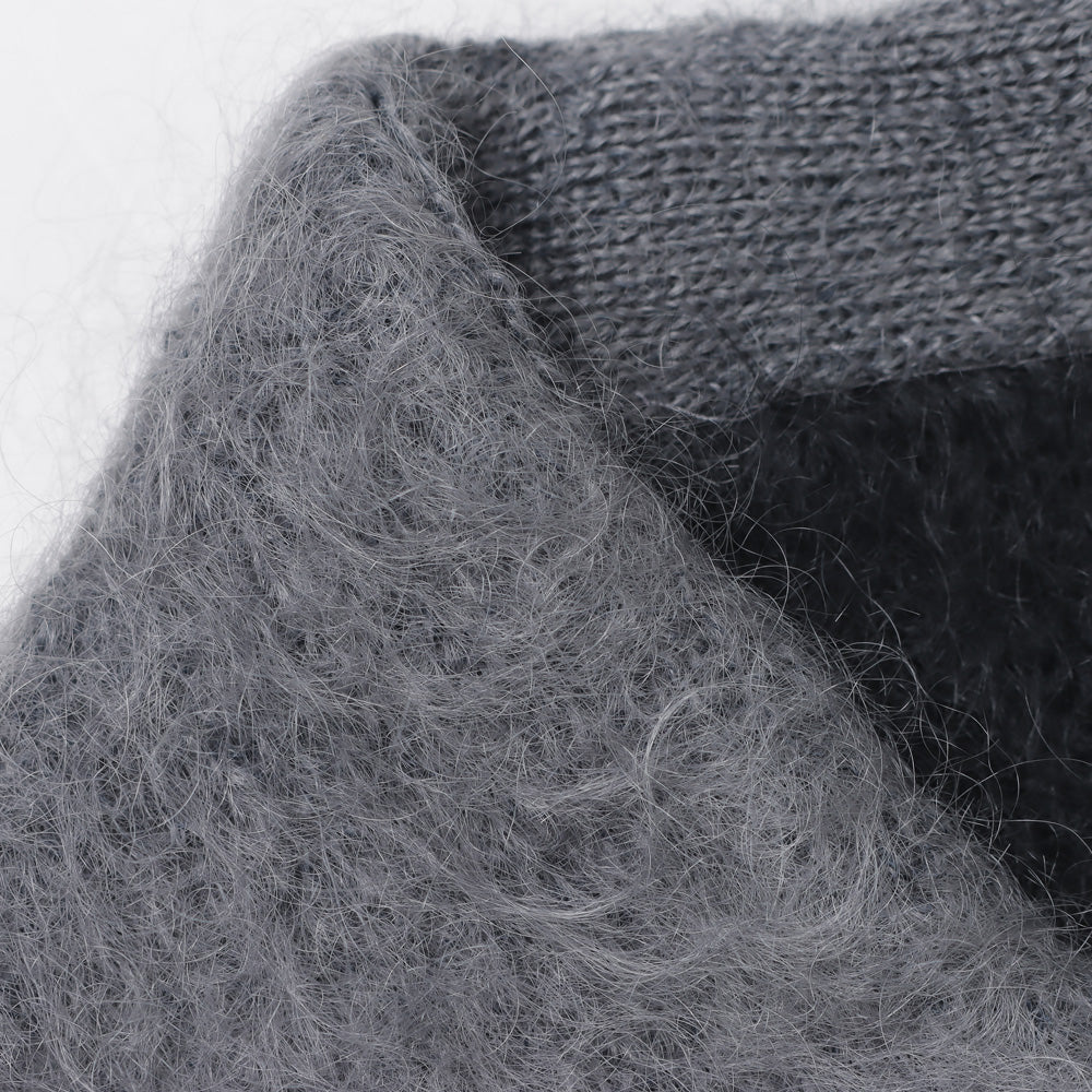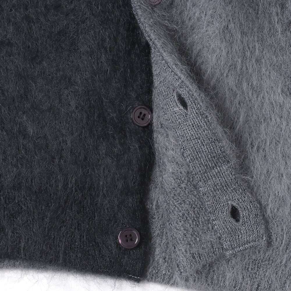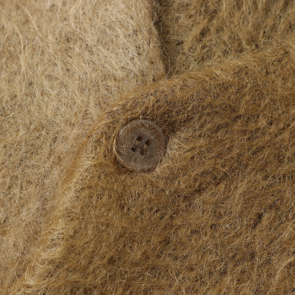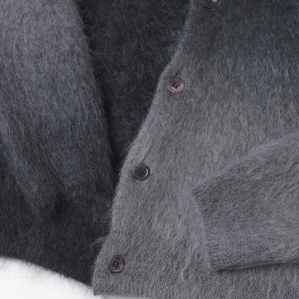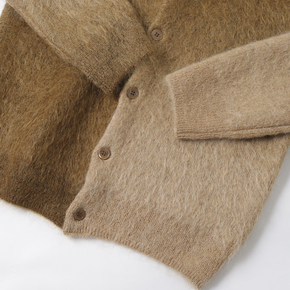 It is spun without blending in wool, and to take advantage of the characteristics of mohair, the fibers are carefully brushed to give it a long, supple, and glossy appearance.