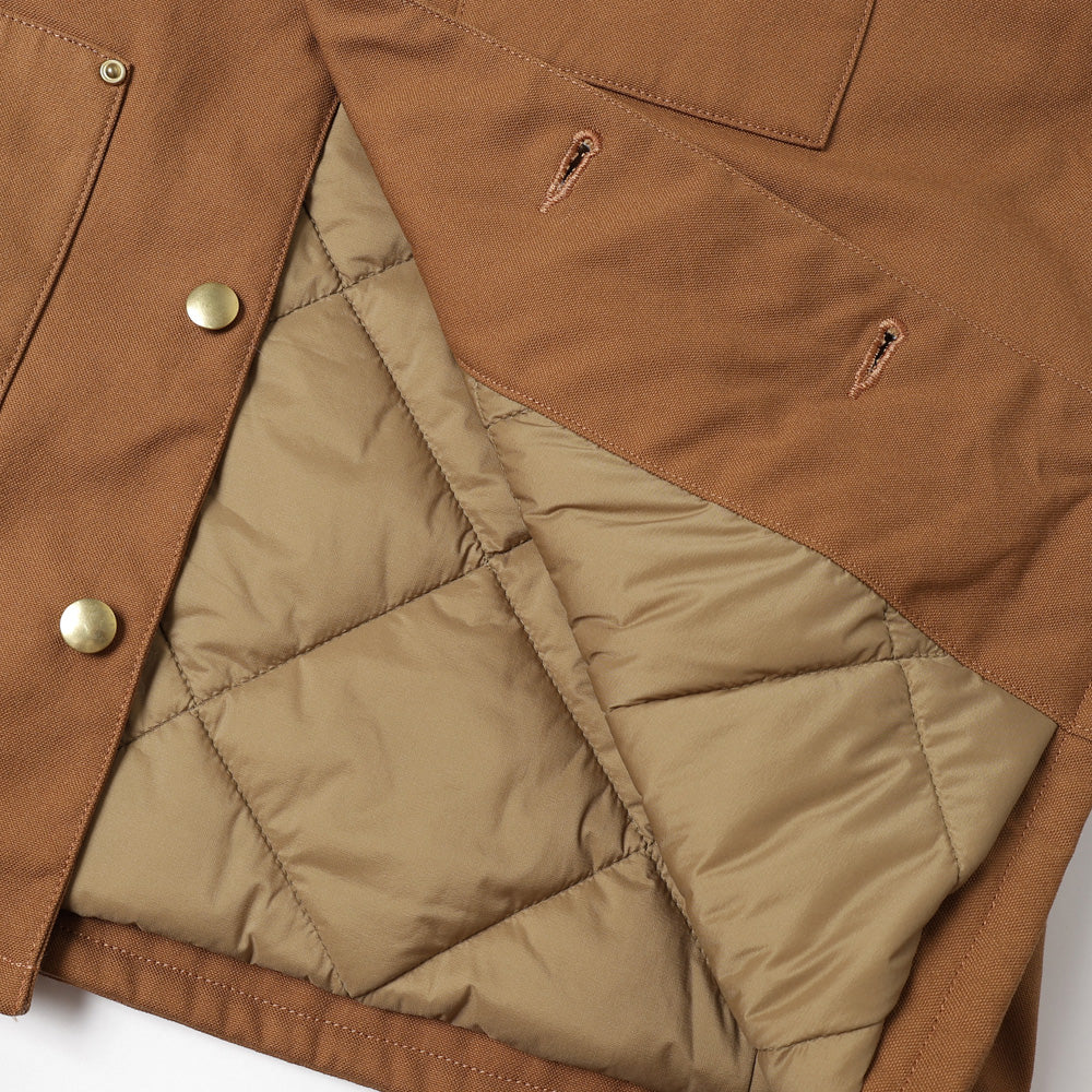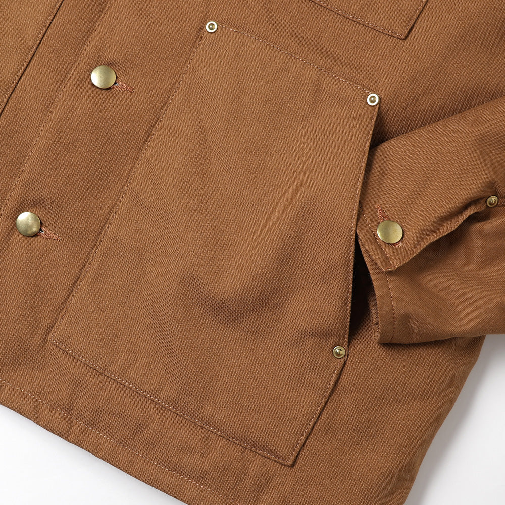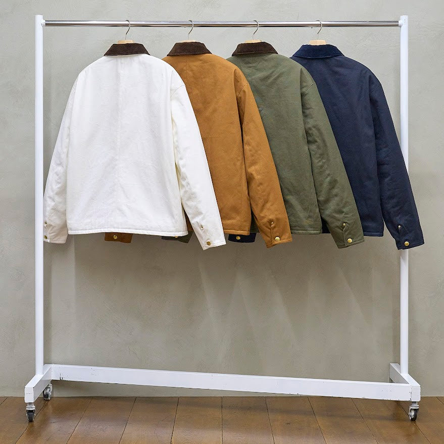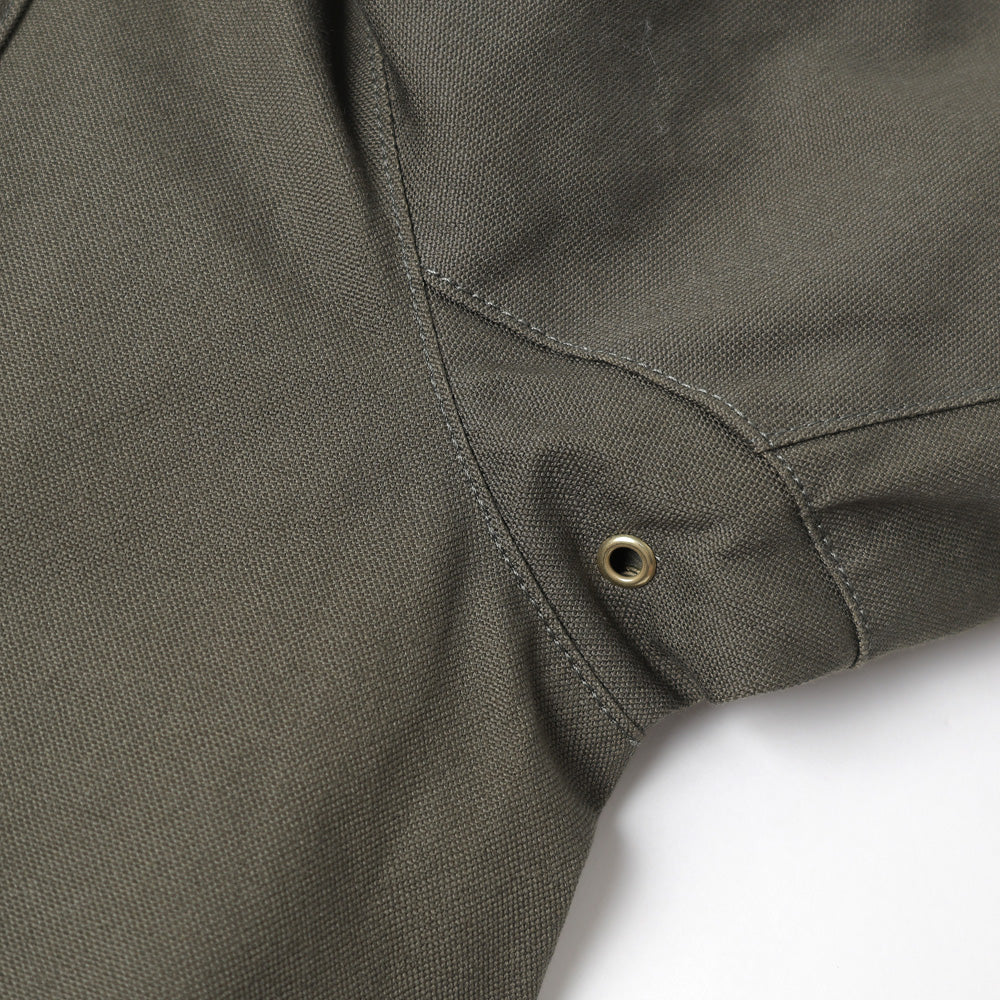 Outer material: Selvedge duck woven on a power loom, this material has a moderate density and a fluffy texture.