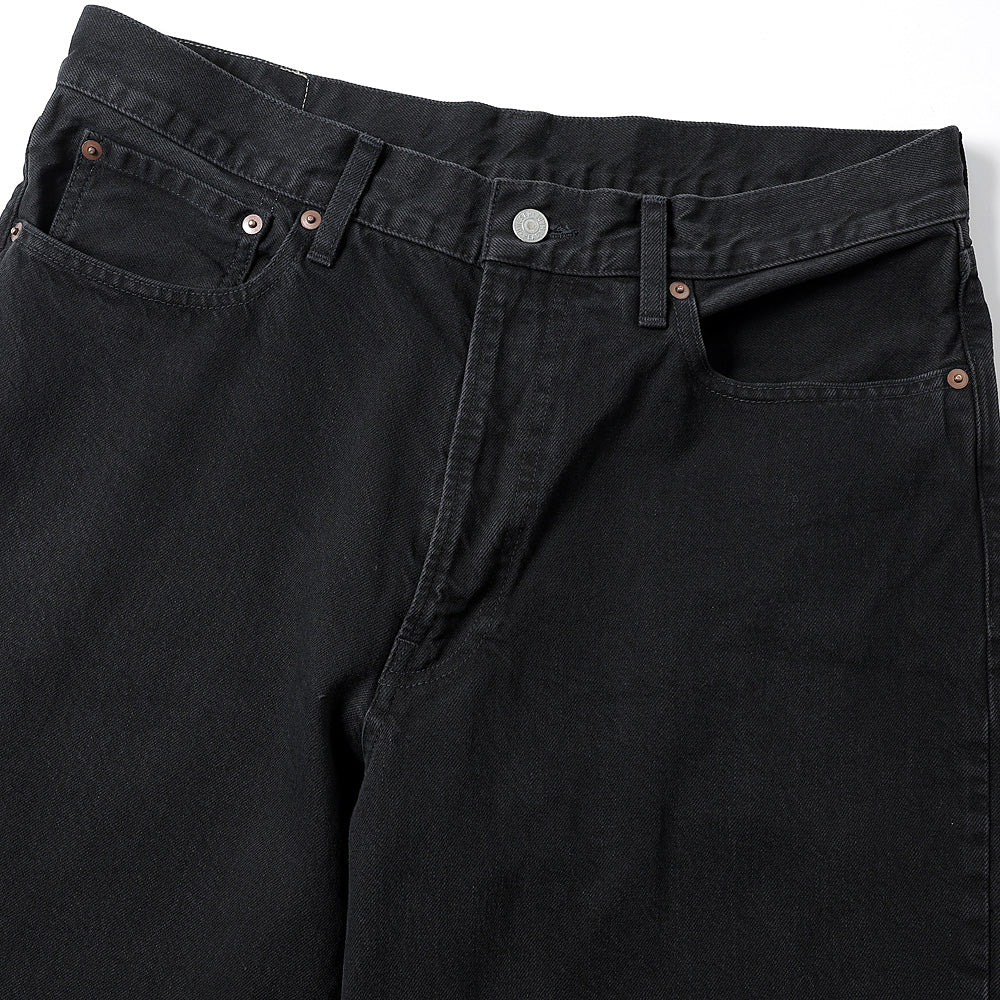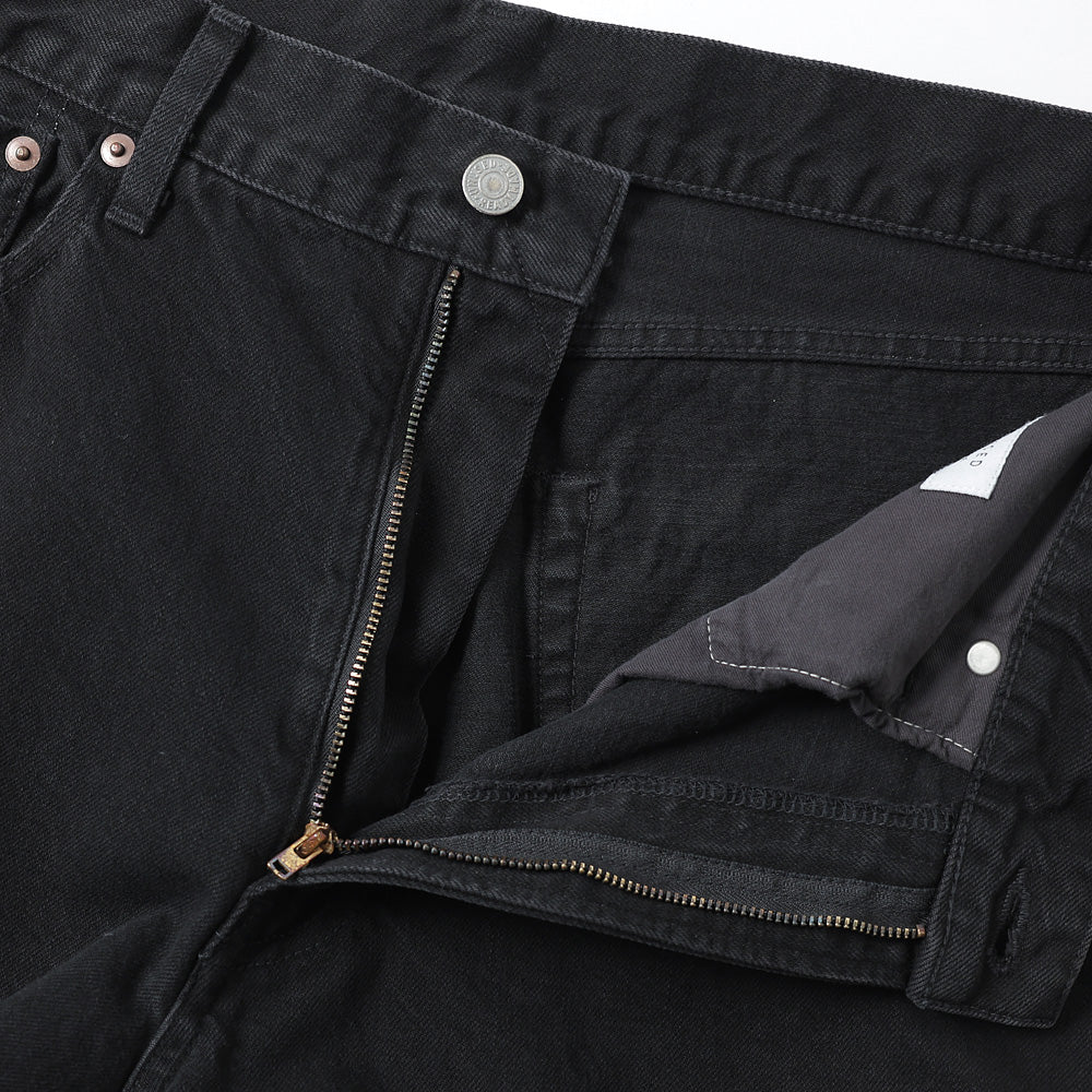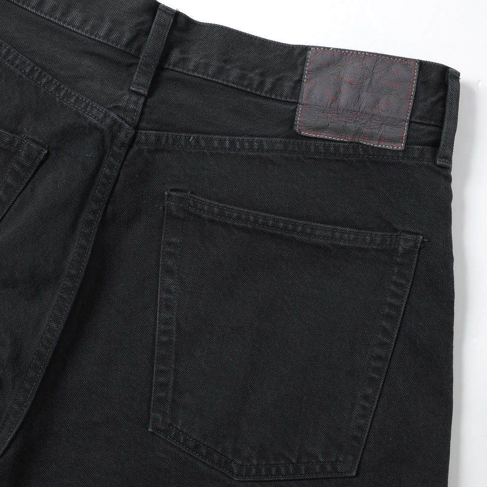 BLACK: 3/1 twill denim with uneven warp and weft yarns for a clean look with just the right amount of unevenness. The warp yarns are rope dyed with a white core, allowing you to enjoy the changes that occur over time.