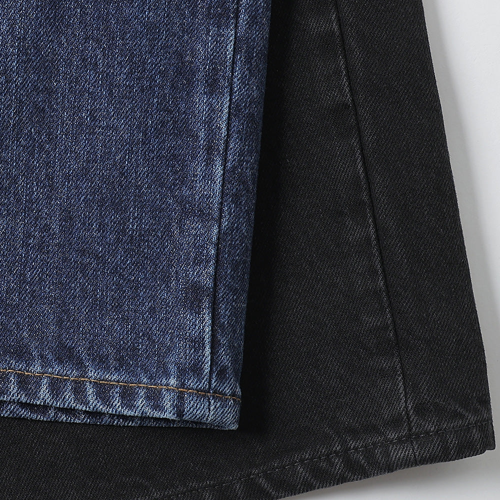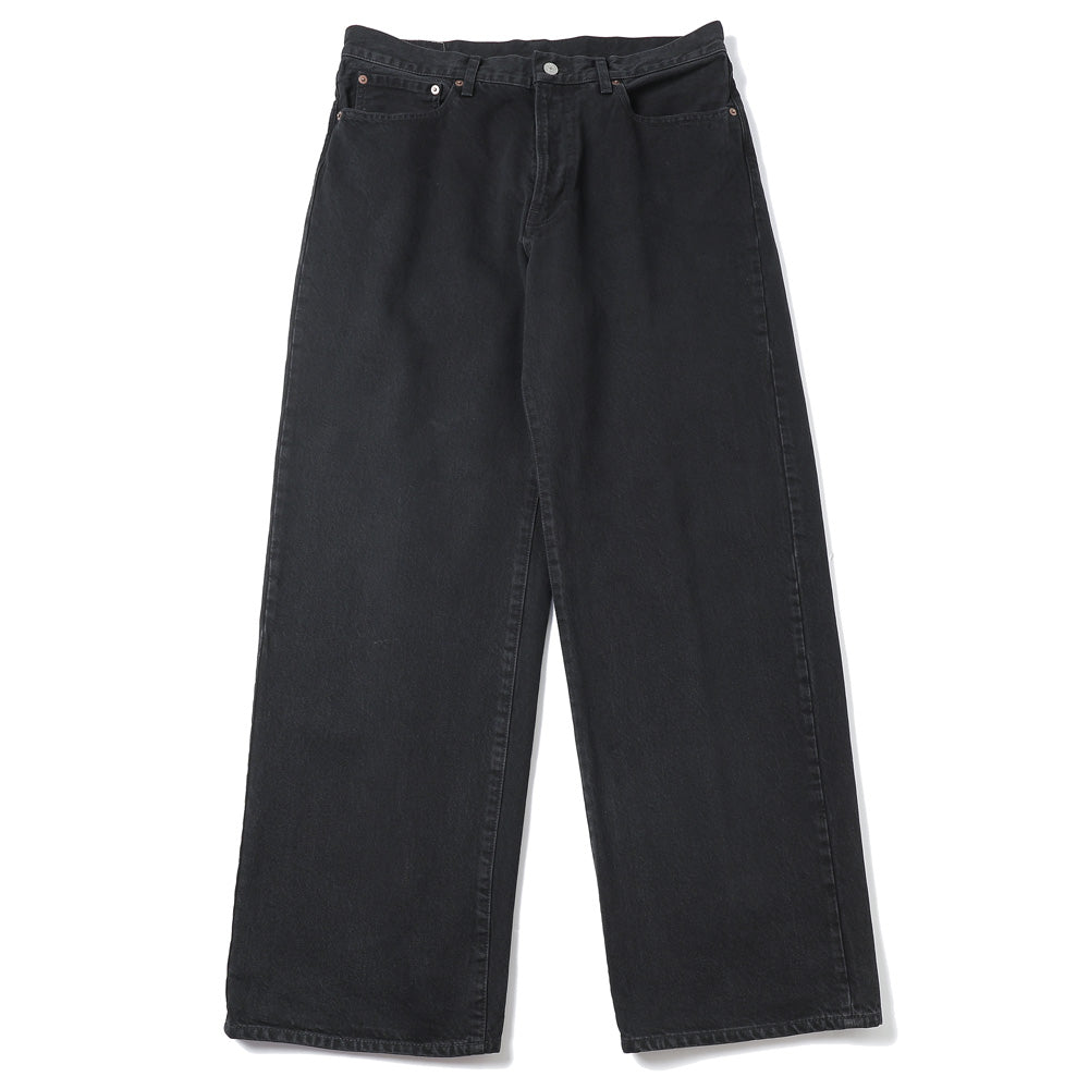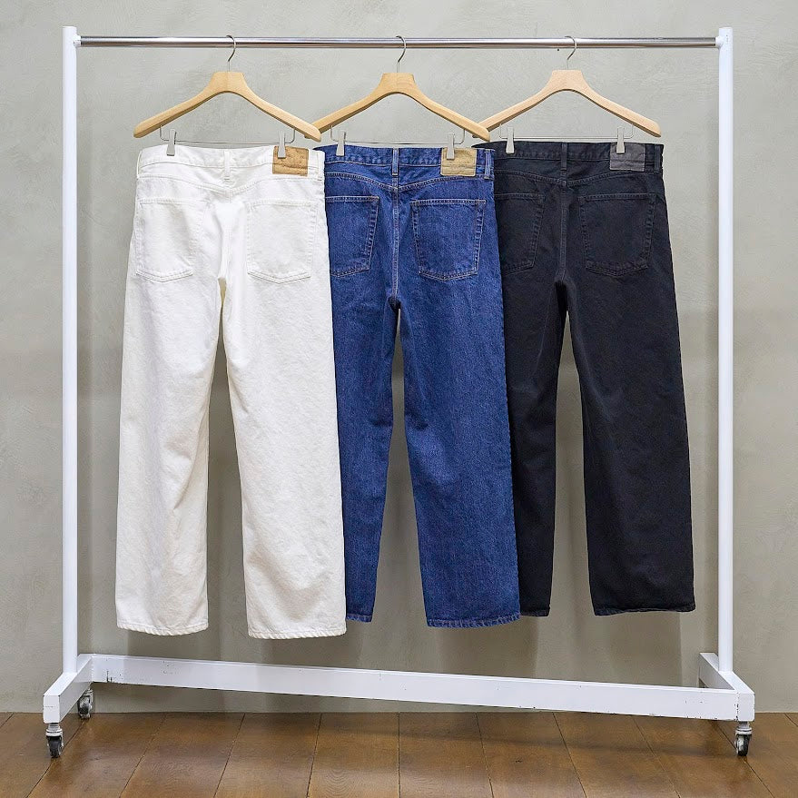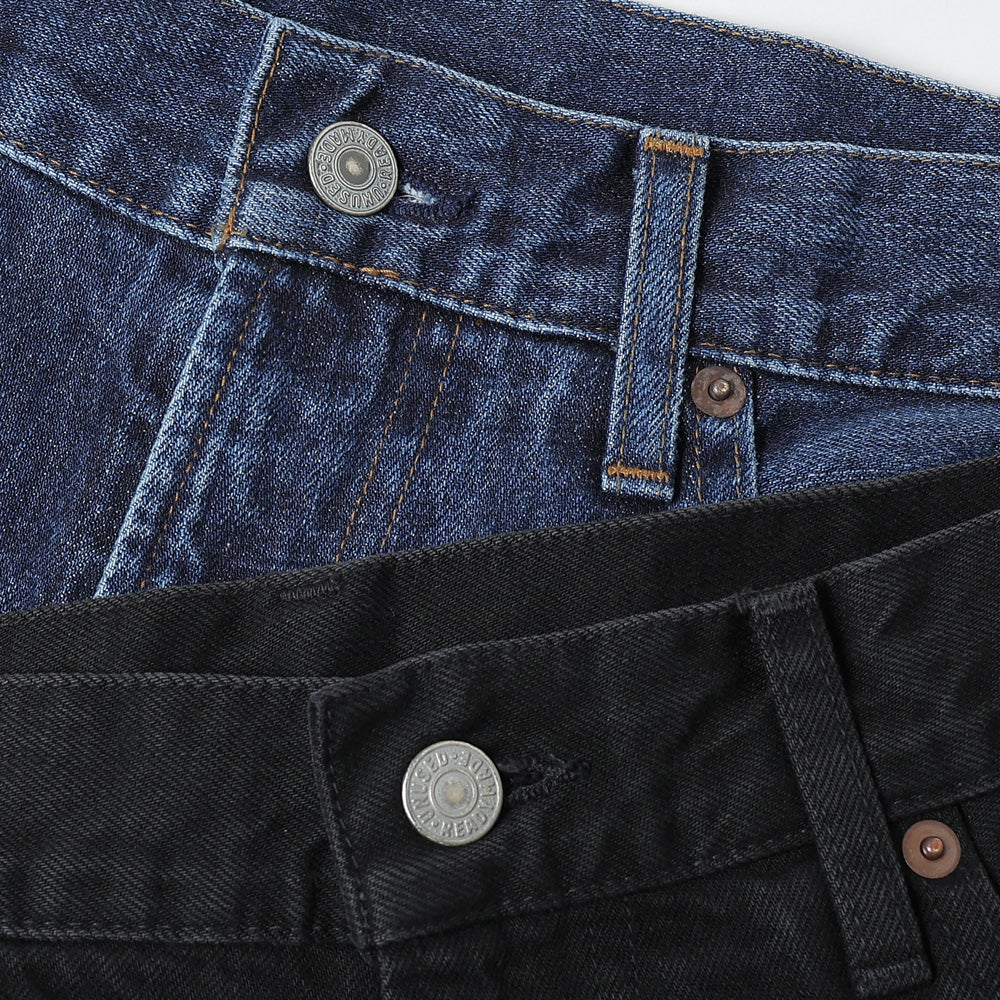 BLACK: 3/1 twill denim with uneven warp and weft yarns for a clean look with just the right amount of unevenness. The warp yarns are rope dyed with a white core, allowing you to enjoy the changes that occur over time.