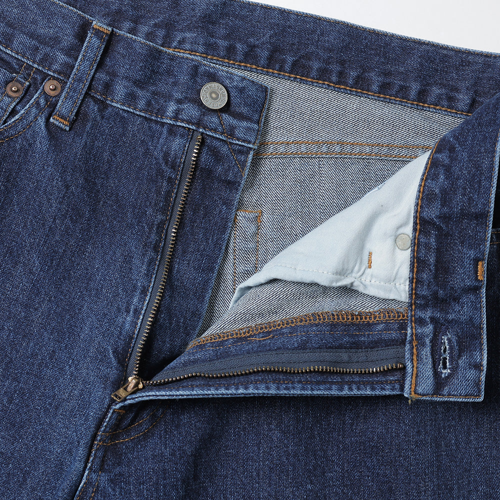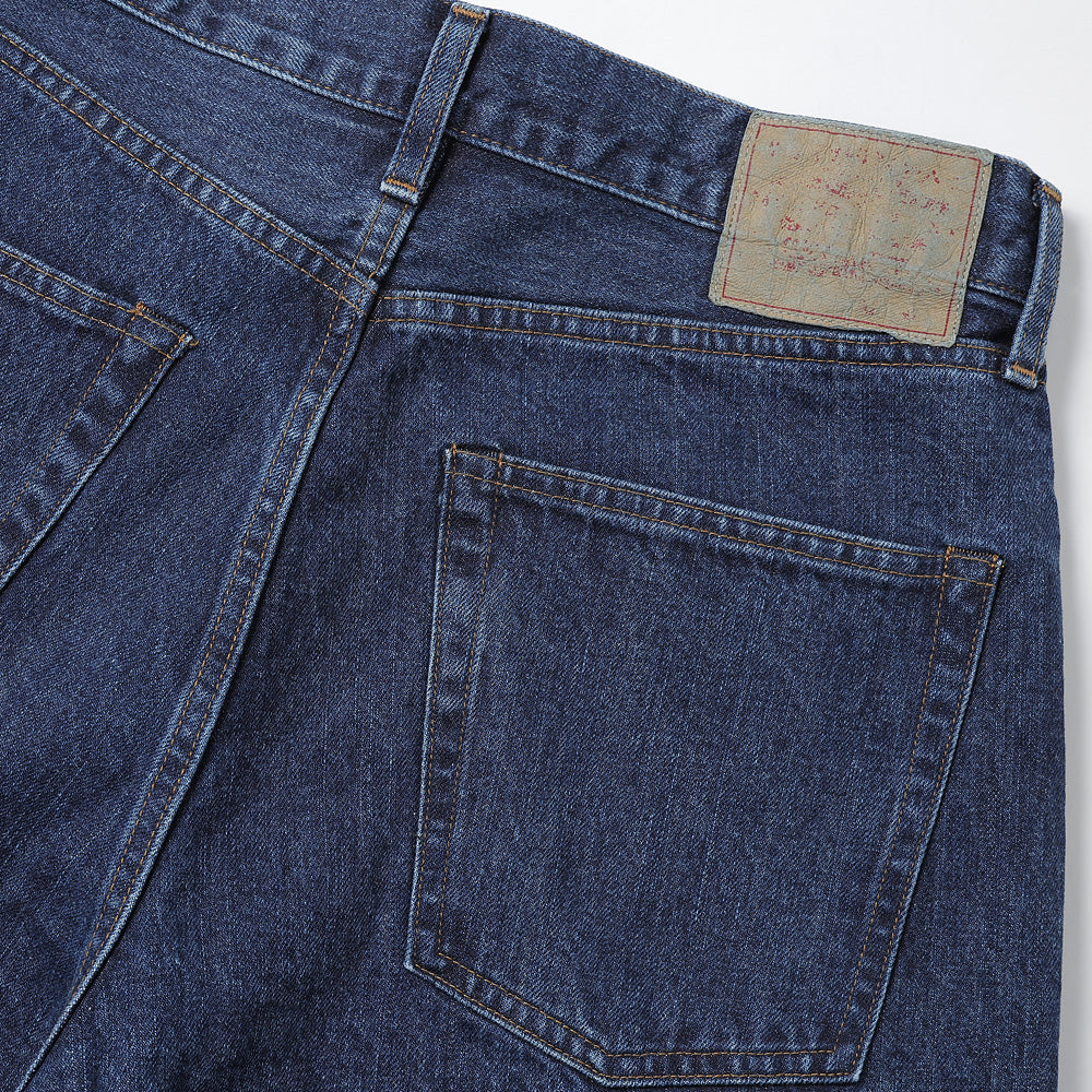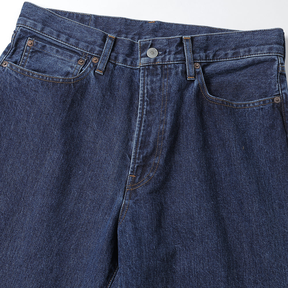 INDIGO: This denim is a reproduction of the early Levi's 66 products, and uses several different types of uneven yarn to recreate the sharp vertical unevenness.