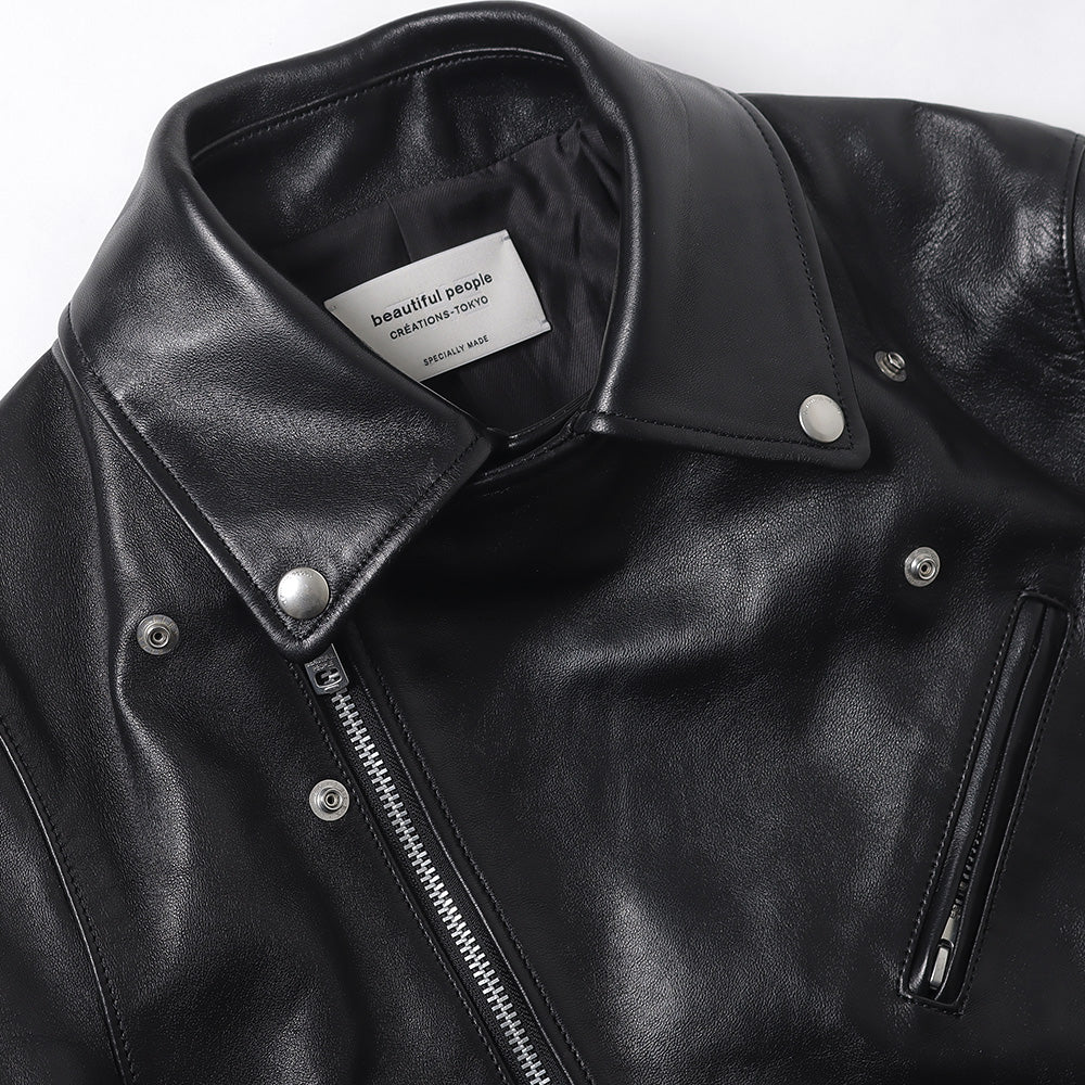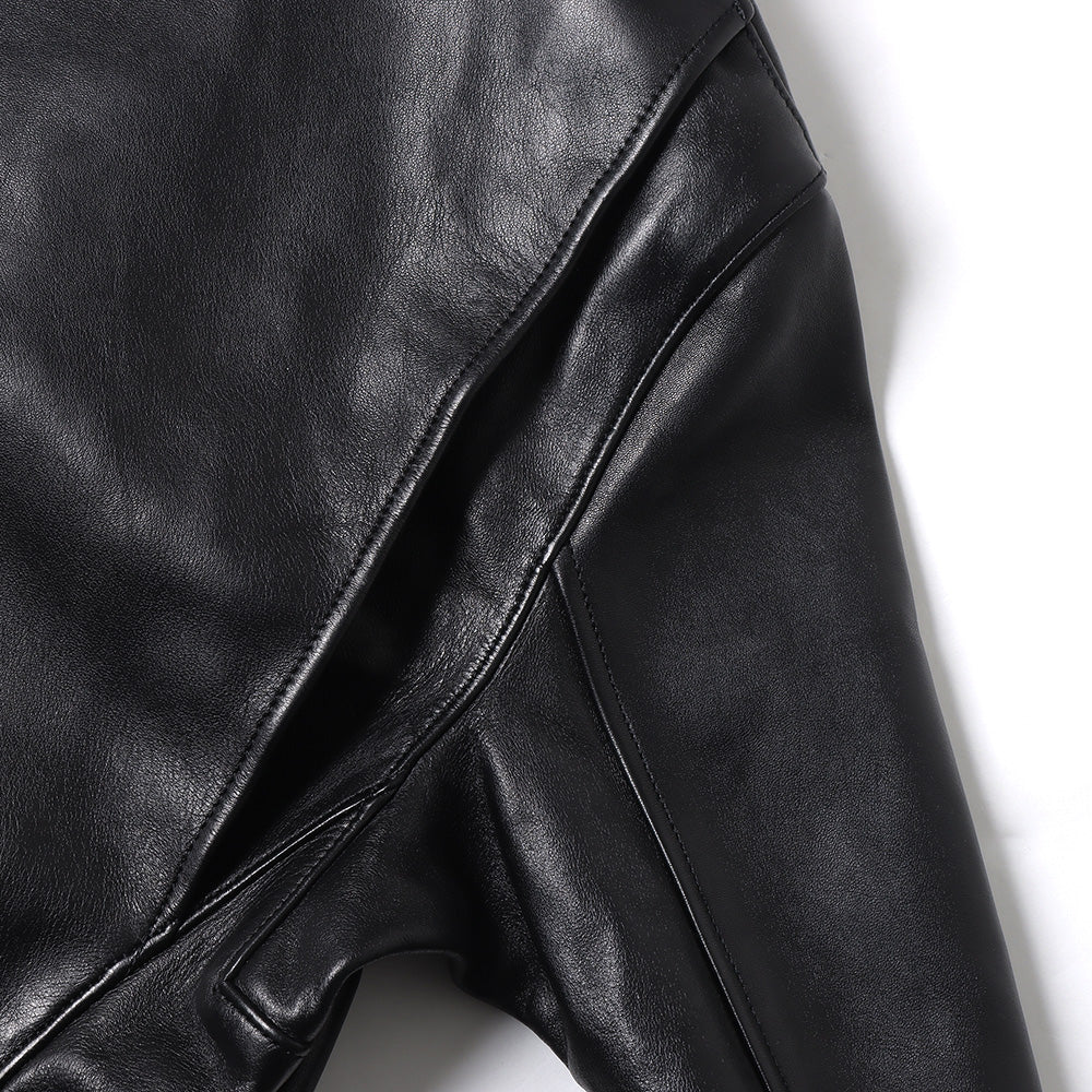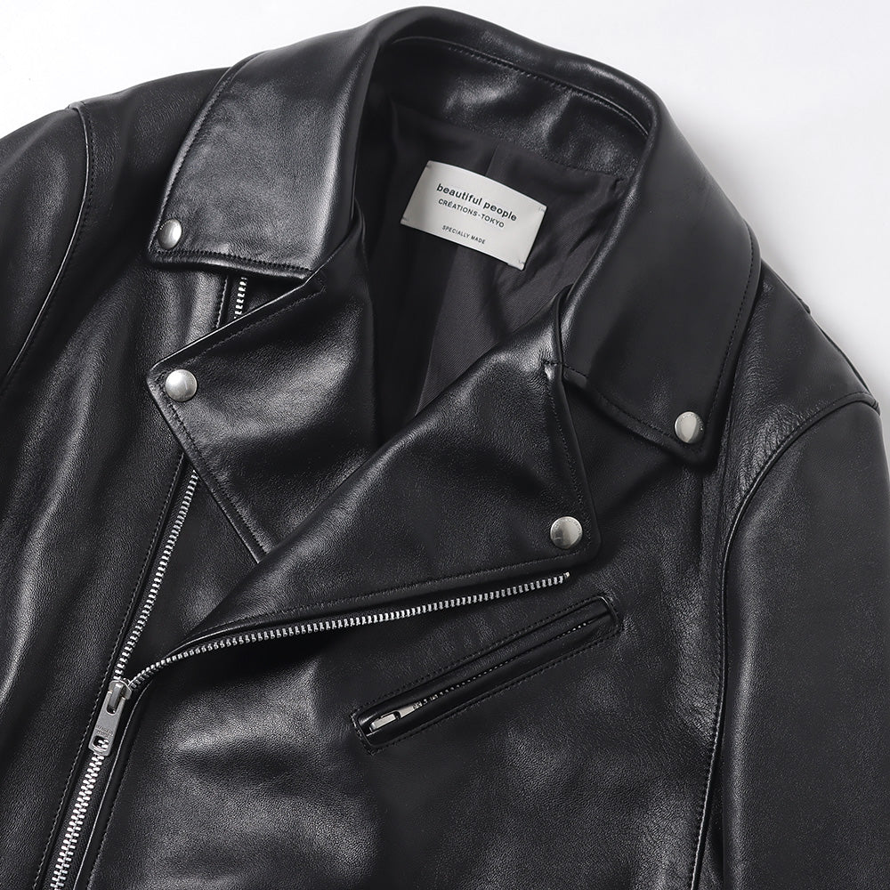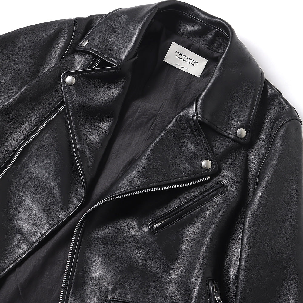 ・A compact rider's jacket with a classic design ・Features a short length and square silhouette ・Clean sleeve width and a forward-flared sleeve pattern that creates a three-dimensional effect when worn ・Sleeves feature pivot sleeves used in hunting jackets ・Features cutting and action sleeves that cover tightness and sleeve movement ・Choose a silhouette to suit the wearer's style ・Features logo-printed dot buttons, zipper top, and buckle