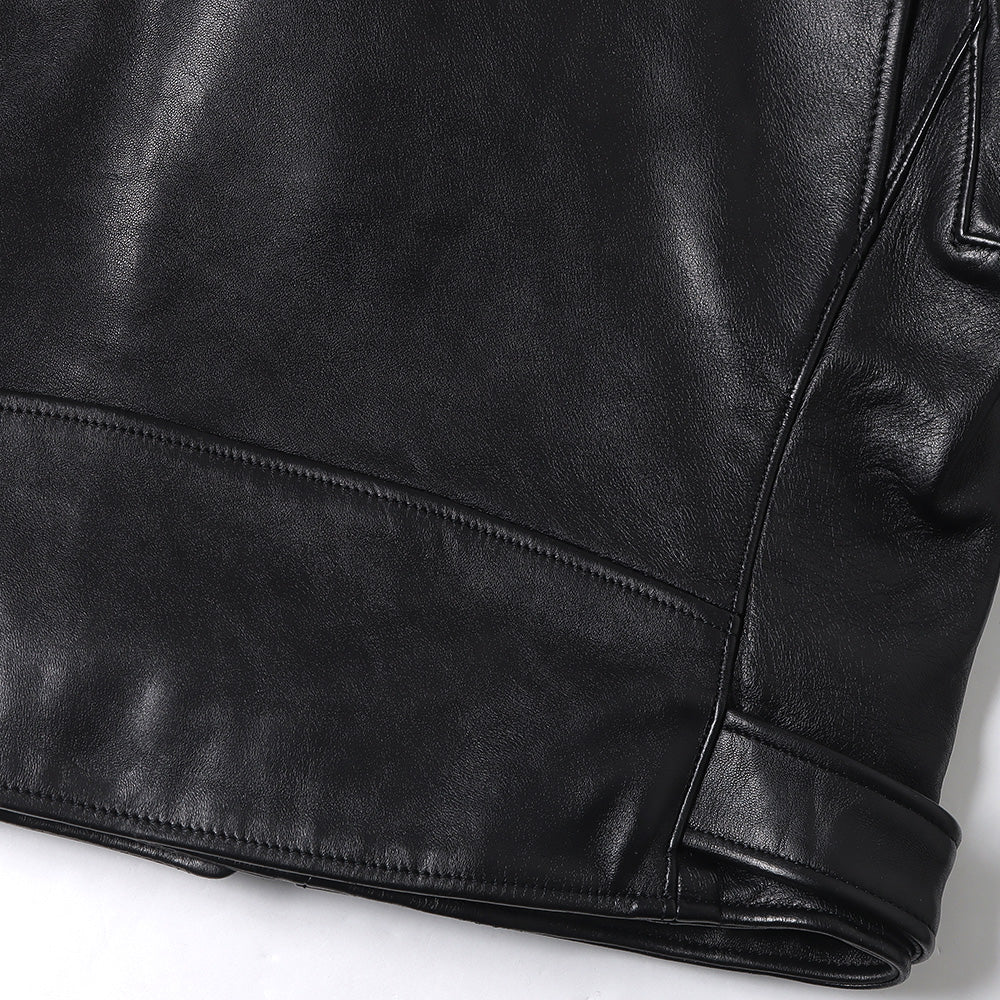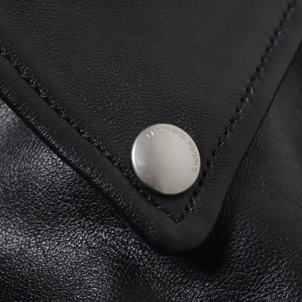 - Sheepskin leather finished to give it a deadstock look - Vegetable tannins are used in the tanning process - Special oils are added during dyeing, and the leather is washed in its finished state to prevent the hard core characteristic of vegetable tanning from remaining.