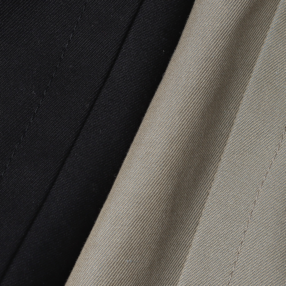 上質なフィンクスコットンとシルクを使⽤したシャンブレーギャバジンです。 柔らかく滑りのある⾵合いにする為、何度も⽣地を叩いてもみ洗いする加⼯を施すことによる上質な落ち感と独特な⾊味が特徴です。