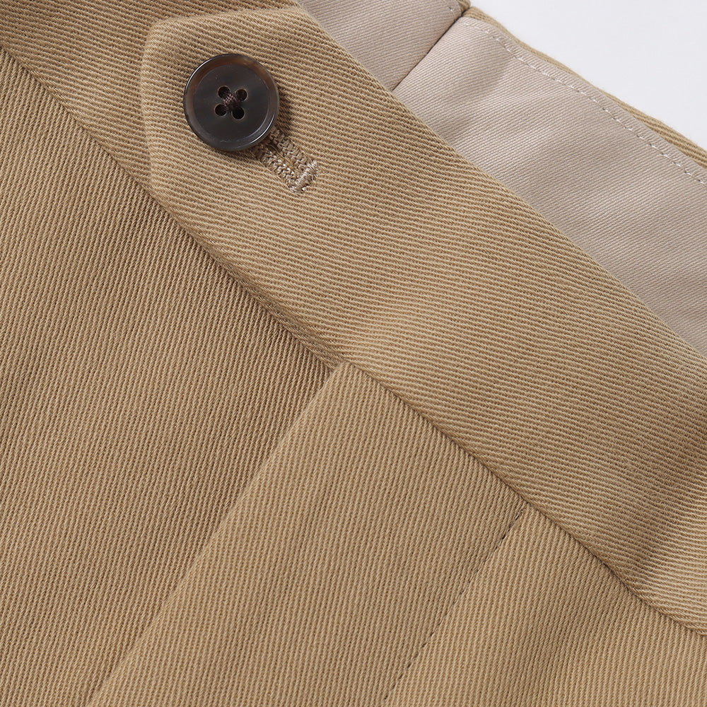 These chinos are made from 100% Zimbabwe cotton with a strong uneven texture and woven at a high density.