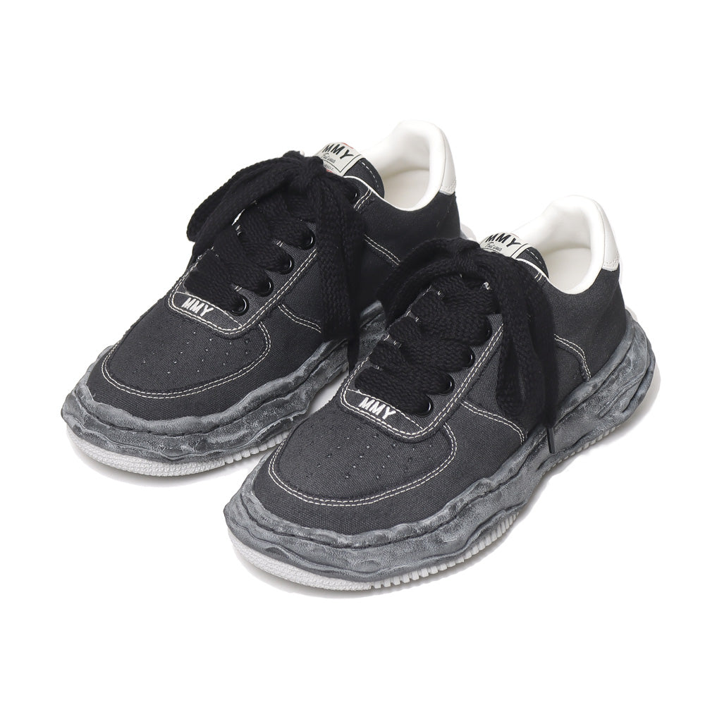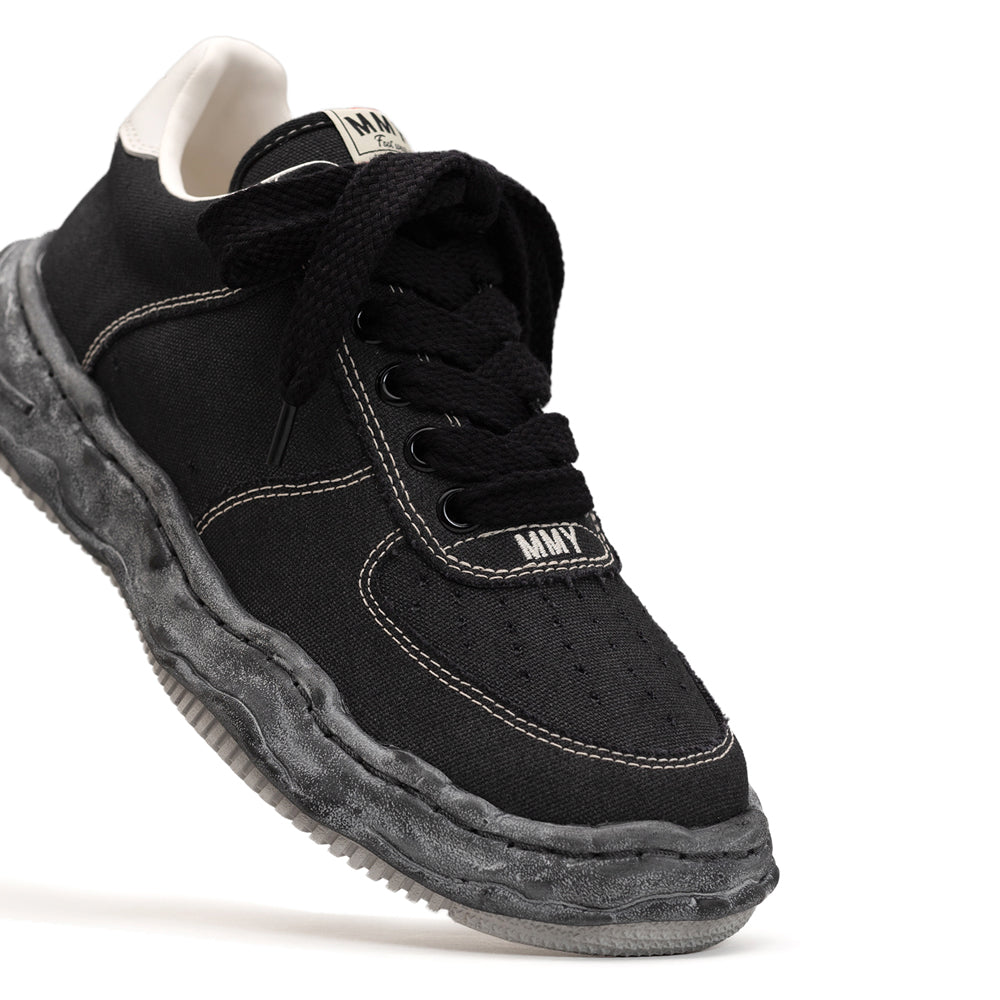 (WAYNE) OG Sole Canvas Garment dye Low-top Sneaker BLACKxBLACK