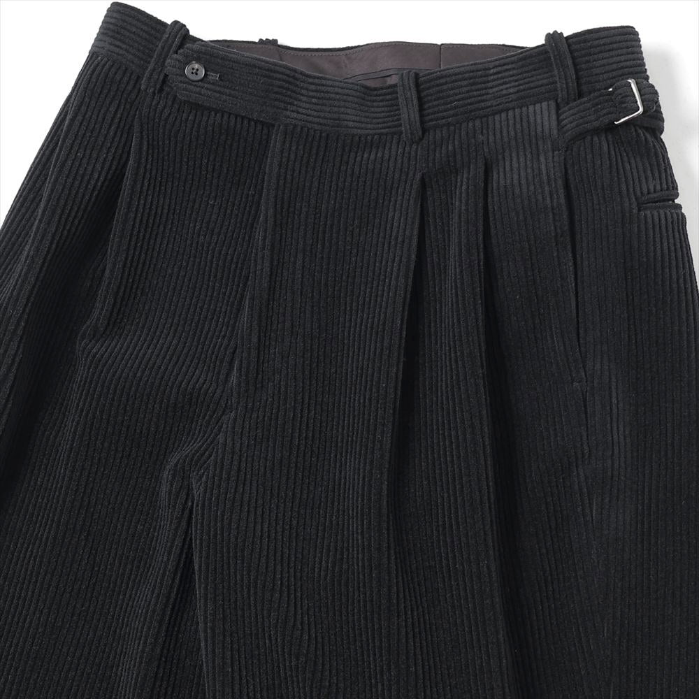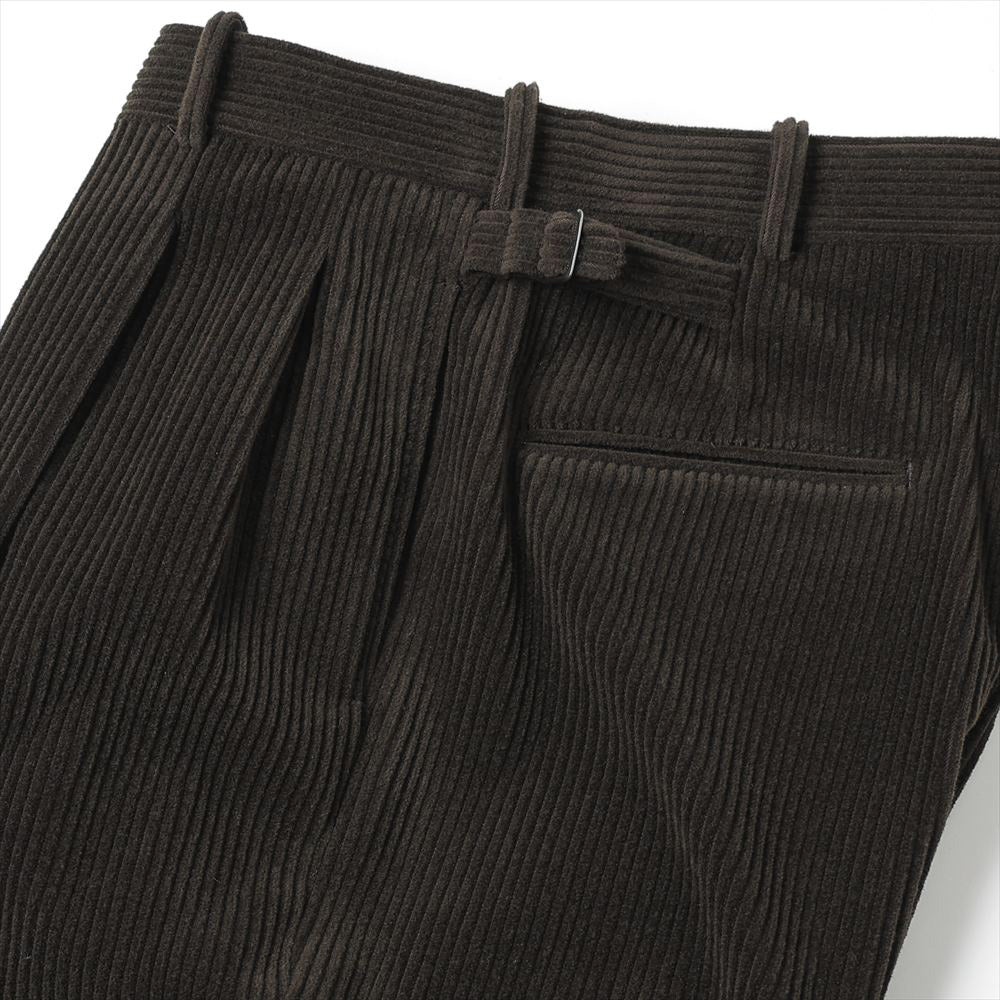 It is characterized by its thick ridges that are brushed to create a neat round shape, and because the cotton warp threads have a high density, the fabric sheds less than regular wool corduroy.