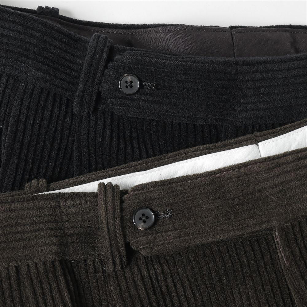 Wool corduroy made with Supima cotton warp threads and New Zealand super160's extra fine merino wool weft threads.
