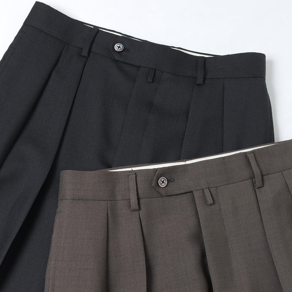 The hopsack fabric, which was previously available as a standard item, is now available in 100% wool this season. In addition to the crisp feel of the fabric, the open weave makes these trousers extremely breathable, making them perfect for the upcoming season. The fabric is firm and wrinkle-resistant.
