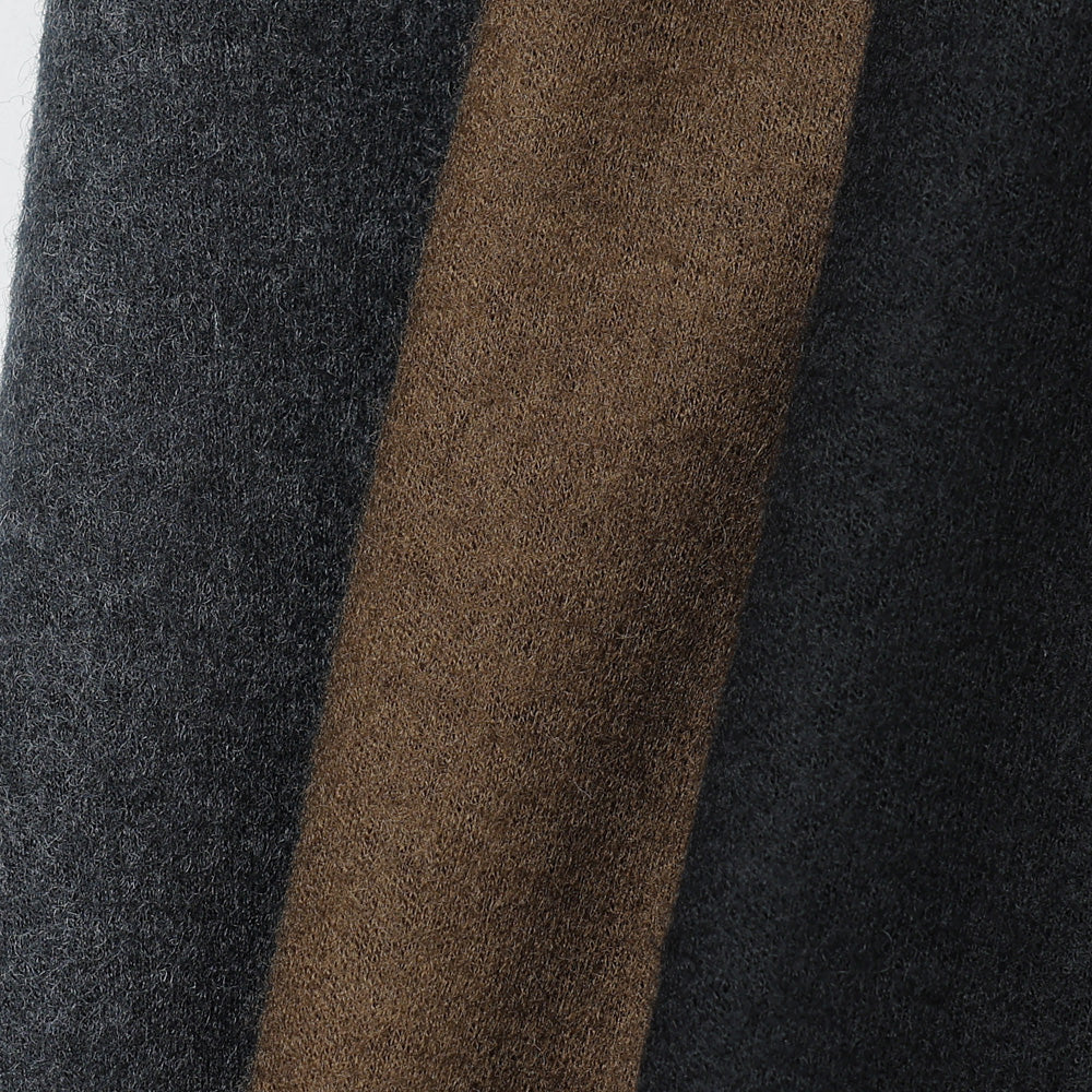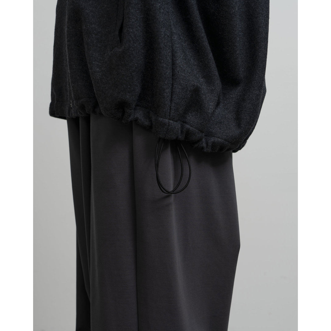Compressed wool smooth knitted with high-quality wool and milled under high pressure to create a flannel-like finish. Milled and scale-off processed, it is hand washable. It features a refined wool-like luster and a firm, firm feel and supple drape created by compression. A warm track jacket perfect for winter.
