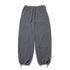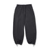 Wide trousers with a moderate firmness and volume that allows air to flow through them. Drawstrings are provided not only at the waist but also at the hem, allowing you to adjust the silhouette. The material has a wool-like appearance but uses recycled polyester, giving it a surface with less fuzz and a firm and resilient feel due to its strong twist. It is comfortable to wear thanks to its stretchability both vertically and horizontally.