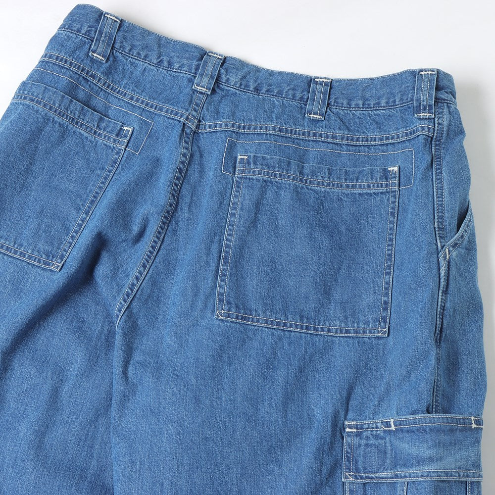 The inspiration for this piece came from 46-inch denim cargo shorts from the 80s and 90s. The silhouette is somewhat similar to the vintage clothing from that time, but the oversized waist has been adjusted in the pattern and updated to be worn with a drawstring.