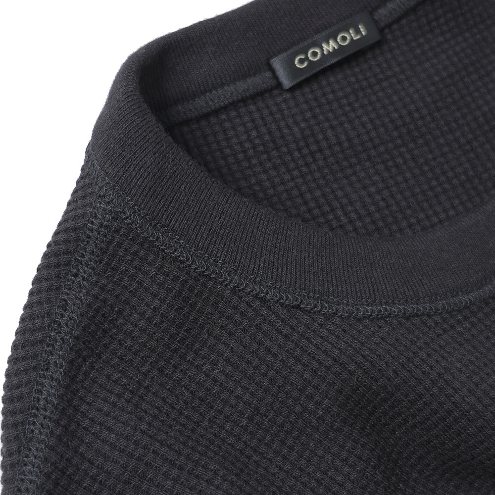コットンカシミヤで柔らかい着心地が特徴のワッフルクルーネックです。ジャスト目なサイズ感になります。