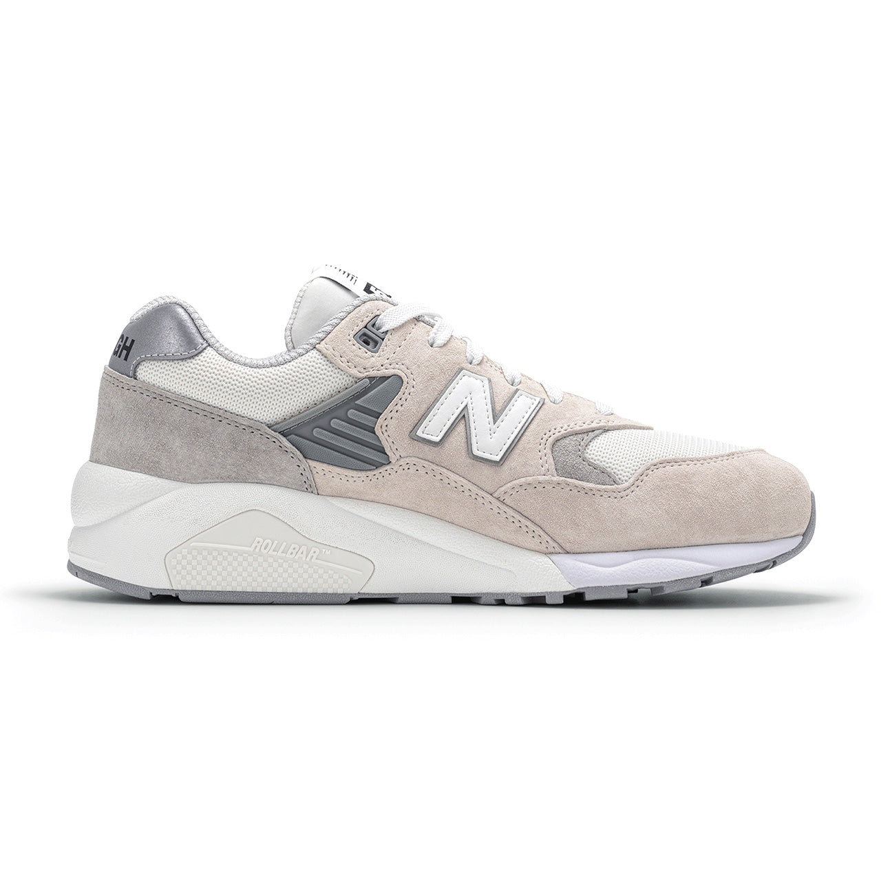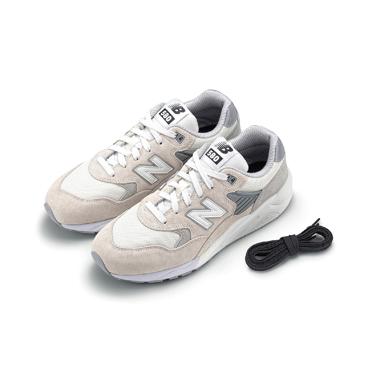 1996年にアメリカで生産されていた"585"にアレンジを加えた日本改良品番"580"をベースに採用。上質なピッグスキンスウェードとメッシュパネルを組み合わせたアッパーは、レトロさとエレガントな雰囲気を醸し出しています。またオフロードシューズならではの程よいボリューム感のあるミッドソール部には、高い耐久性と安定感を実現。ハイテク感のある凹凸を軽減し、シンプルな仕上がりとなっております。
