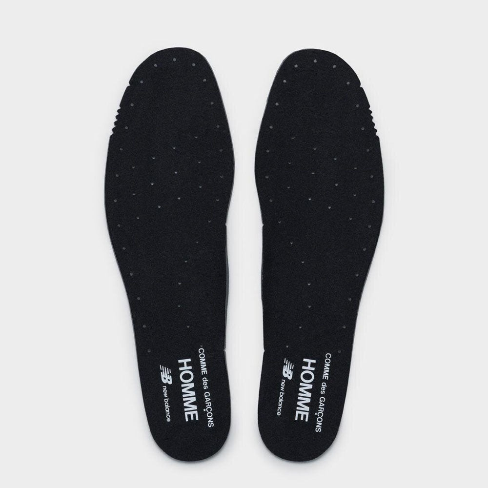 ニューバランスの「509」のシンプルでスリムなデザインを踏襲しつつ、アッパーのパーツの一部を排除してよりミニマルなフォルムに変更。ホワイトのワントーンで仕上げ、シュータンに「COMME des GARÇONS HOMME」のロゴ、インソールにダブルネームロゴを配した。