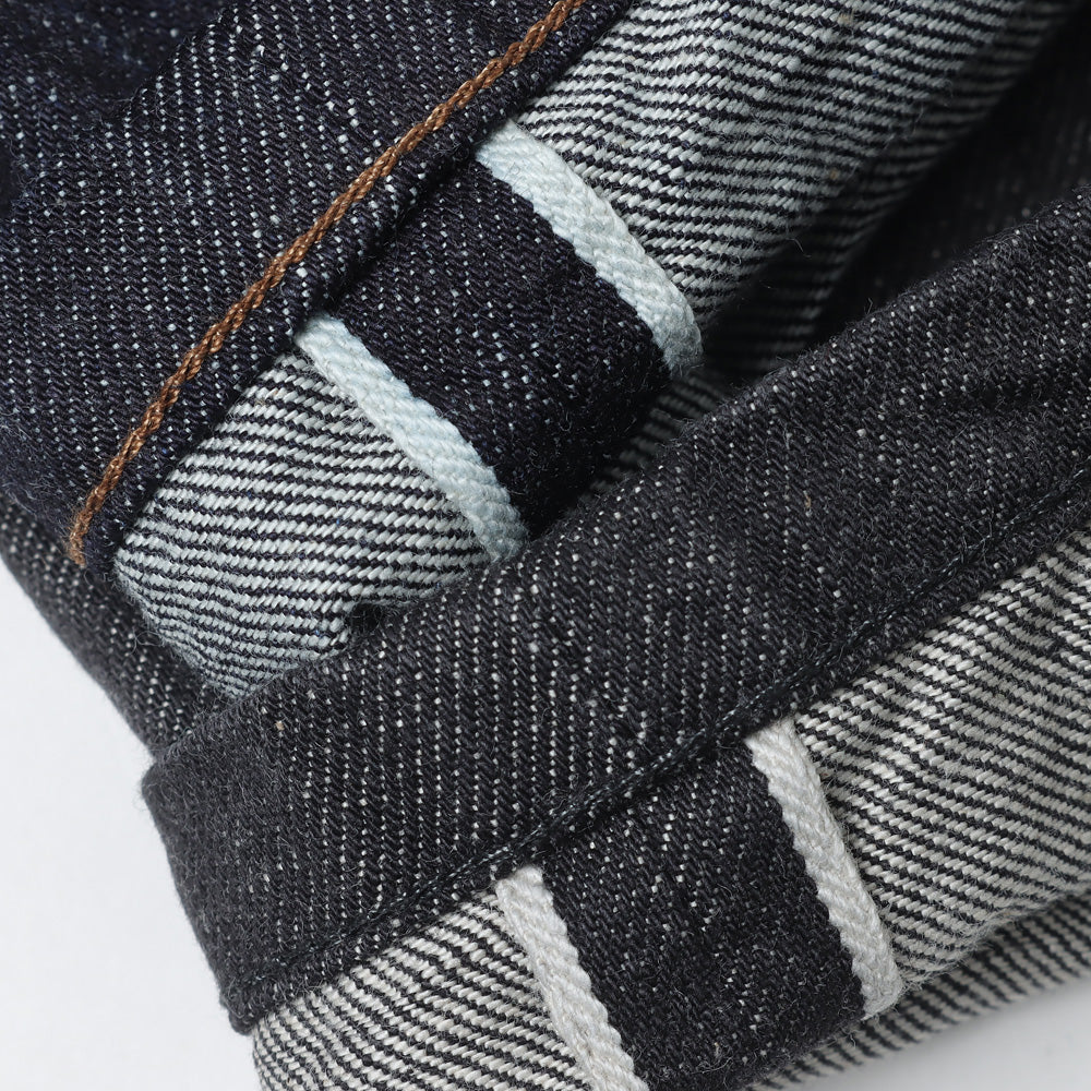 両脇にセルビッチを使用しています。少しムラのある糸と超長綿を使用し、超長綿独特の柔らかさが特徴のオリジナルデニム生地です。洗い加工をしています、サイズに個体差は若干ありますが、通常の洗濯による縮みはほとんど出ません。