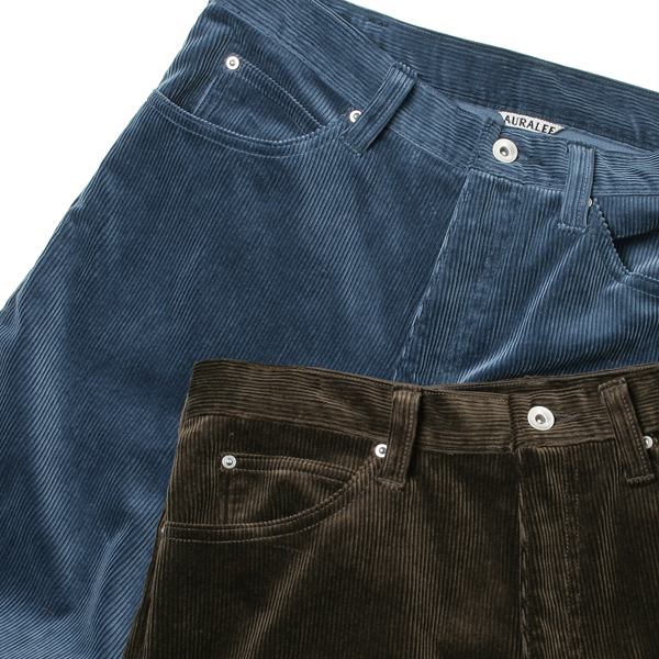 独特のぬめりと光沢があるインドのハイブリット超長綿を贅沢に使用し、しっかりと打ち込んで太畝に織り上げたコーデュロイを、さらに柔らかい風合いにする為、硬さが無くなるまで何度も生地を叩いて揉み洗いする加工を施しております。柔らかくベルベットのような光沢のある素材になります。