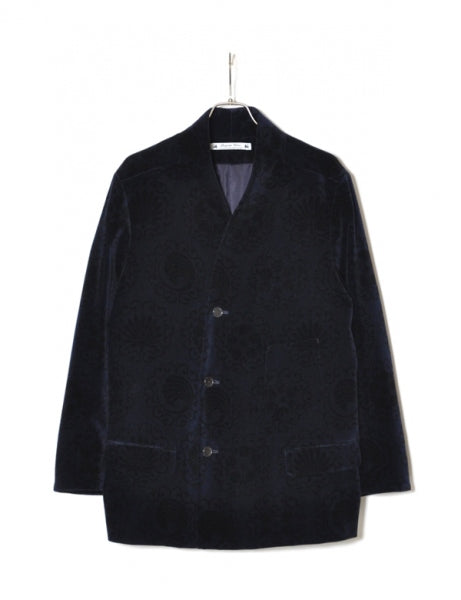 日本の四季を象徴する"梅、団扇、銀杏、雪輪”の家紋を散りばめたパターンをコットンのベルベットにプリントした生地を使用したジャケットです。