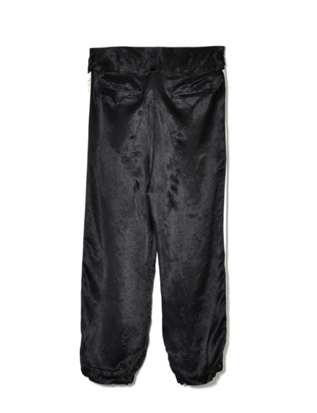 ドレープ感のあるアセテート生地を使用したハイウエストのパンツ。