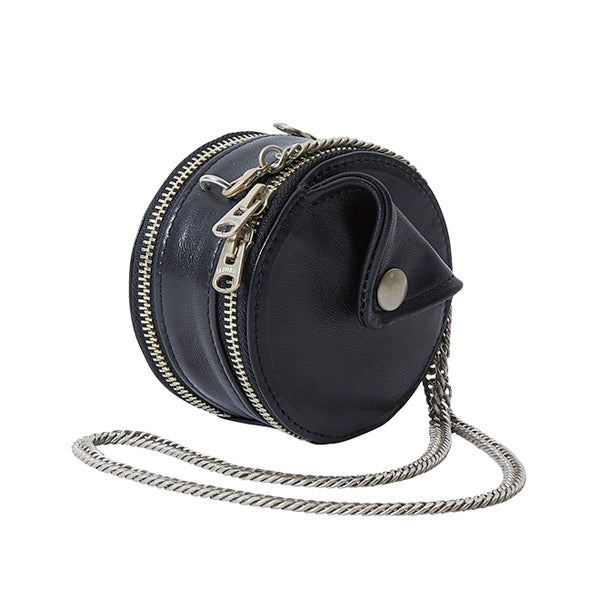 ライダースのディティールを取り入れ、初の丸型の小物・