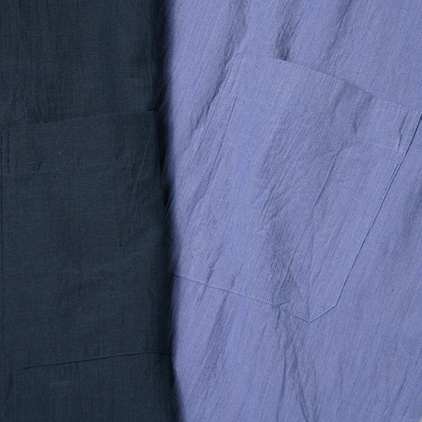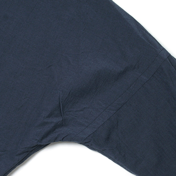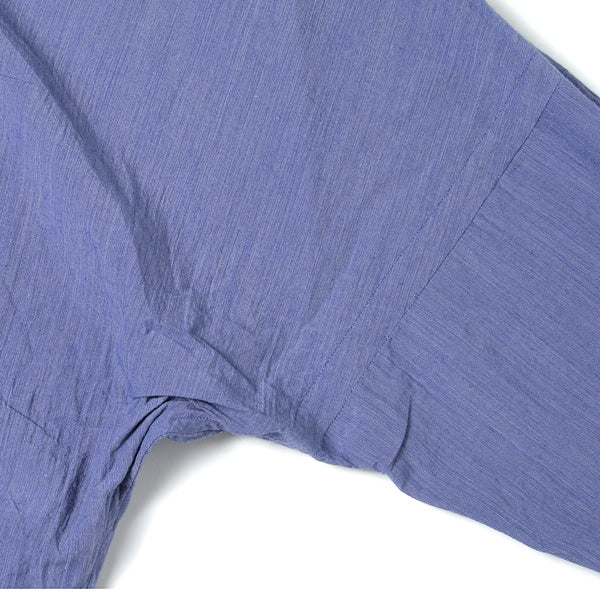 斜め(スラント)開きのフロントにドルマンスリーブを採用した変形シャツ。