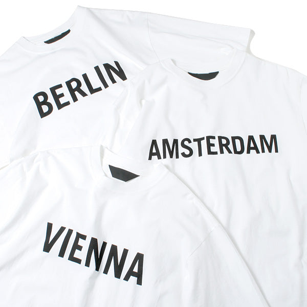 デザイナーが旅をする中で、インスピレーション源となった都市名をプリント。 染込みプリントを採用することで、洗い込むごとに表情が増す一枚。