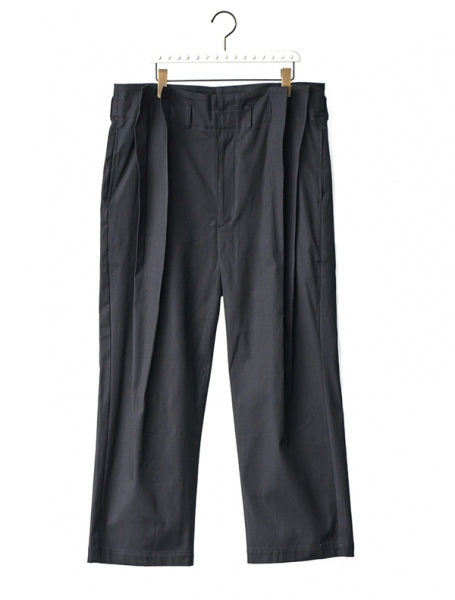 タック部分を立てて穿くようにデザインしたストレッチのワークパンツ。