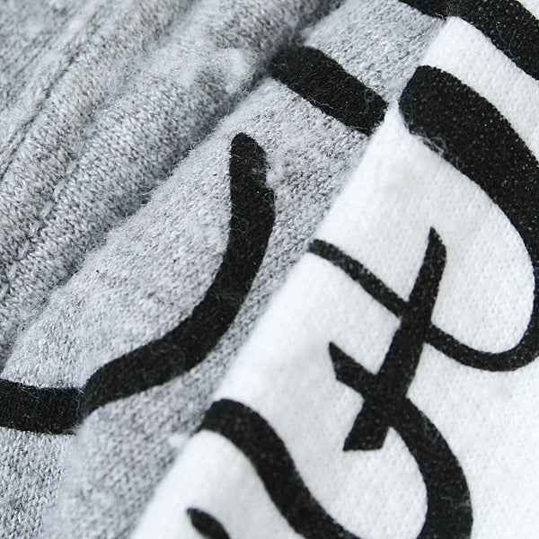 袖には架空の民族が使う文字をイメージして作ったフォントがプリント。