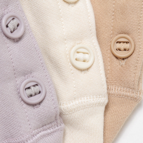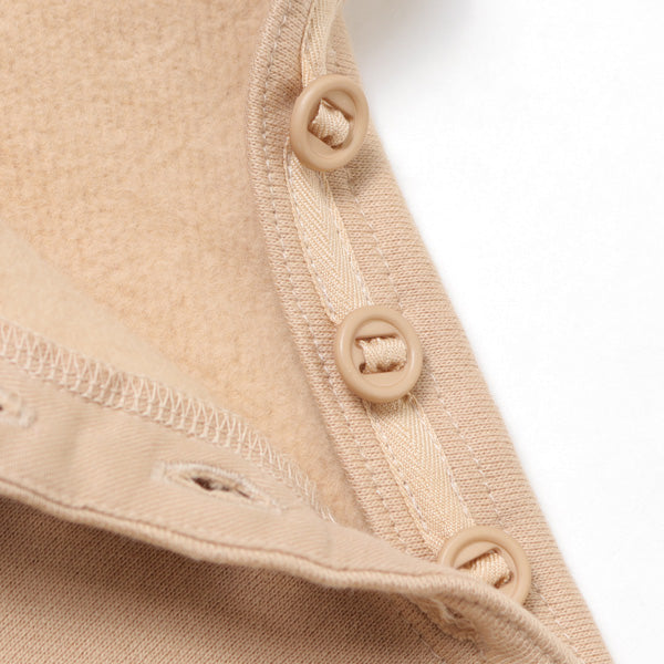 襟のリブ使いと片側に並んだパラシュートボタンが