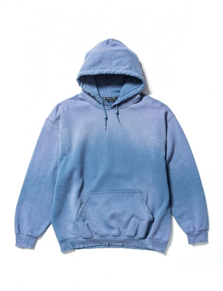 激しいダメージ加工を施したプルオーバースウェットパーカーになります。