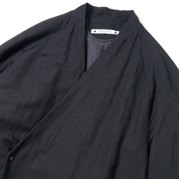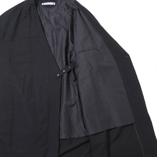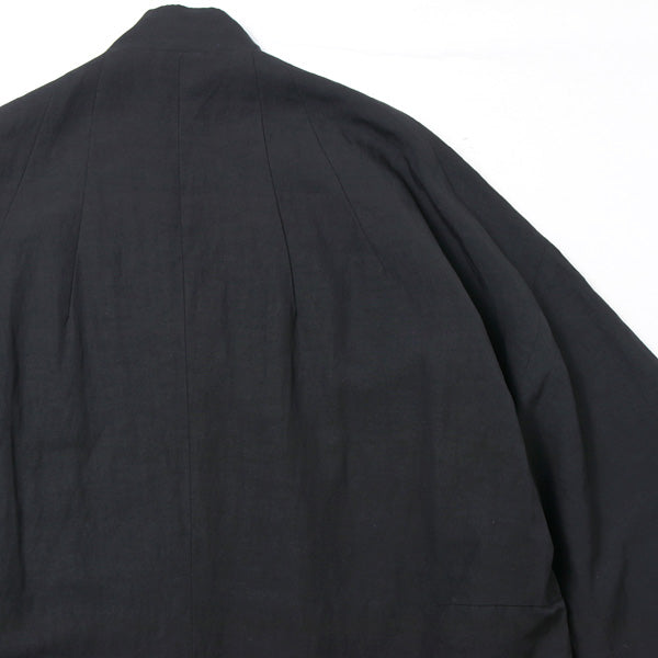 レーヨン×リネン生地を使用したオリエンタルな雰囲気のノーカラーコート。
