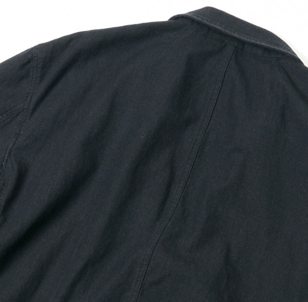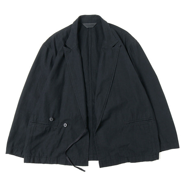 ライトオンスデニム素材は、釦の止め位置により和風なドレープを演出します。