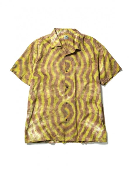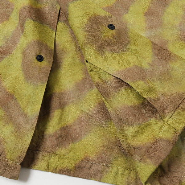 植物柄の織りの生地に独自のタイダイ染めを施したオープンカラーシャツ。