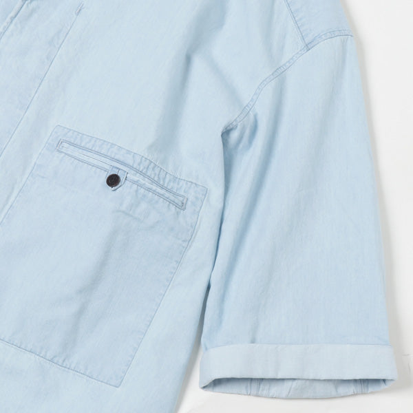 加工違いのブリーチインディゴとダークインディゴはシチュエーションを分け、初夏の羽織として着用したい一着。