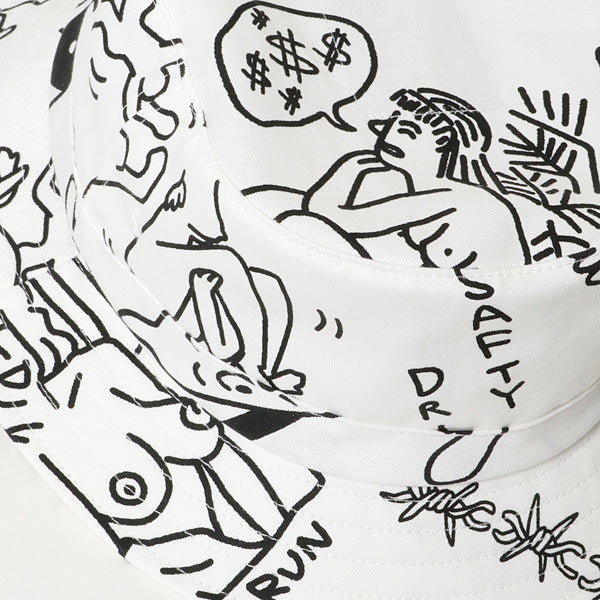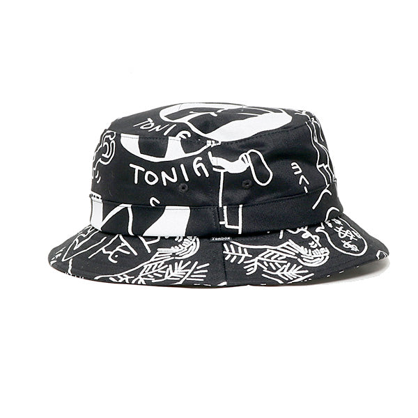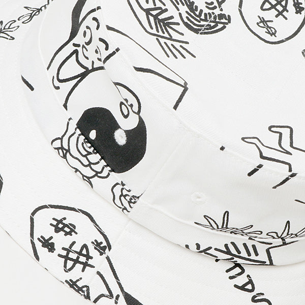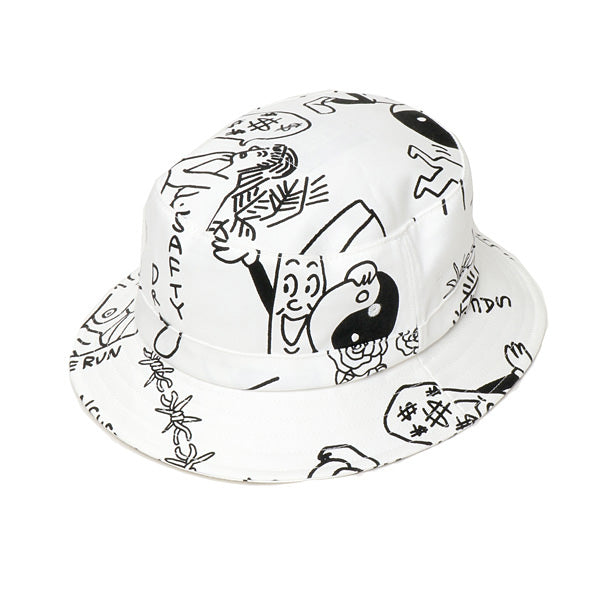 イラストレーターのFACE氏の直筆デザインを総柄プリントしたバケットハット。