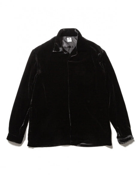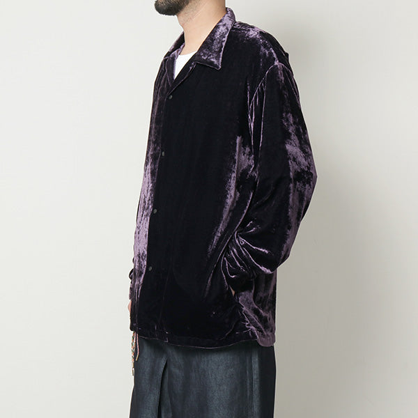 レーヨン混のベルベット生地を使用したオープンカラーシャツ。