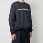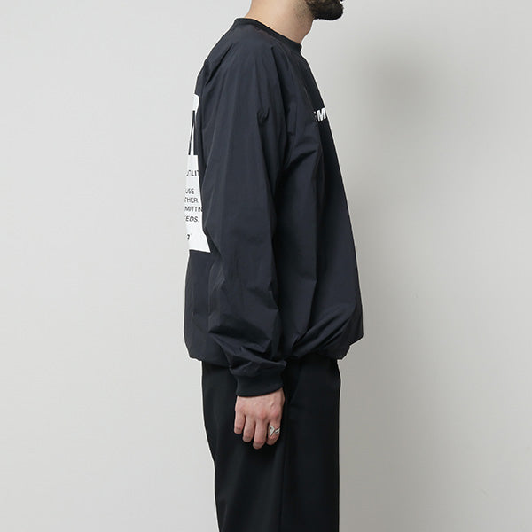 軽くハリ感があるのが特徴のナイロン素材を使用。リブ使いや裾のスピンドルでスポーティ感を出したオーバーサイズのラグランプルオーバーシャツになります。