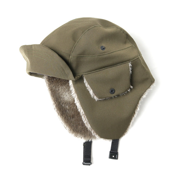 高密度ヘビーオックス素材は強靭なタフさがあり、耳あてのフェイクファーは保温性を高め、付属のアジャスターで耳あてを上部に固定が可能。