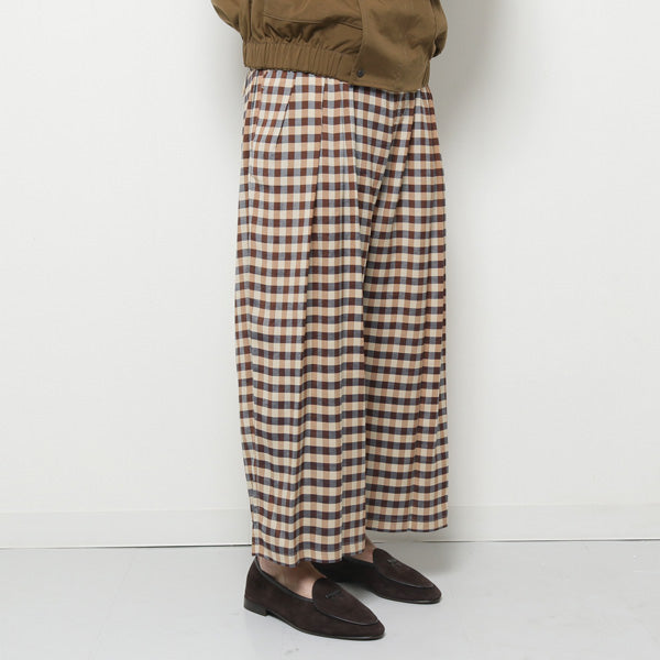 アセテートとレーヨンの先染めのトレンドチェック素材を使用。