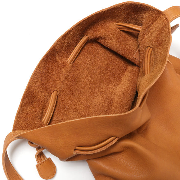 COW LEATHERを使用した巾着型のレザーバッグです。