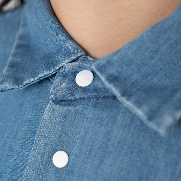 COOLMAX®ヤーンで織ったデニムシャツドレス。