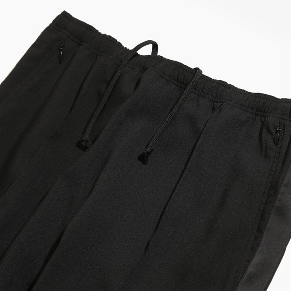 フォーマルなデザインを取り入れる一方、ドローコードウエストやジップポケットなど、細部はスポーティでカジュアルな仕様となっています。