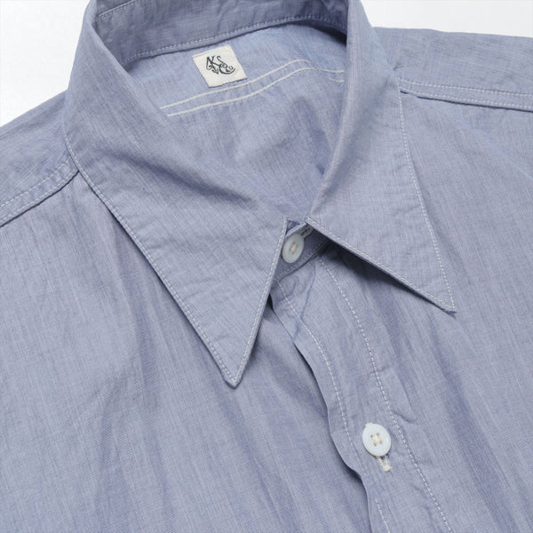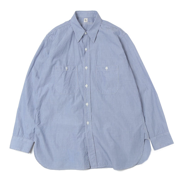 フロントのダブルポケット、鋭角な襟先が特徴のロングスリーブワークシャツ。