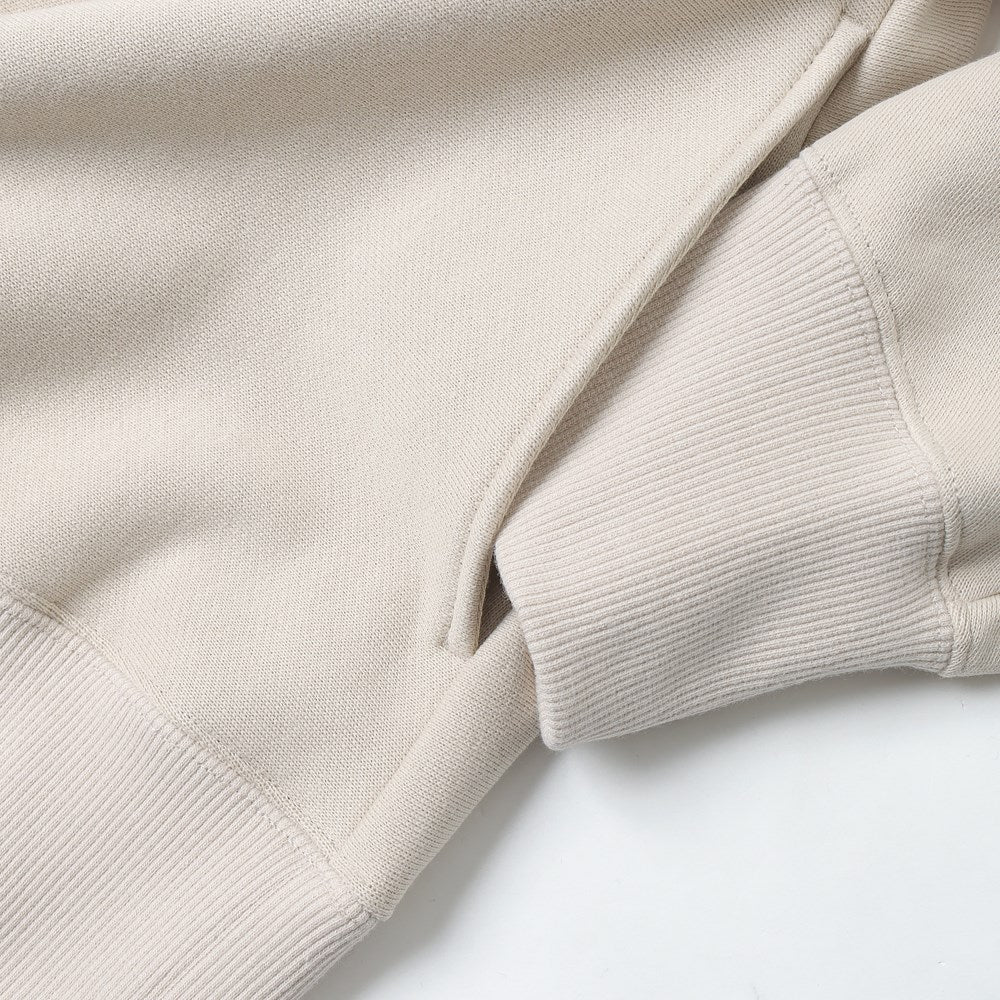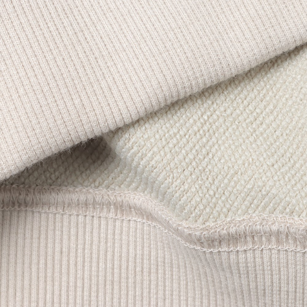 ・やや厚手で反発感がある裏毛素材。裏面にポリエステルを使用することで軽量化。
