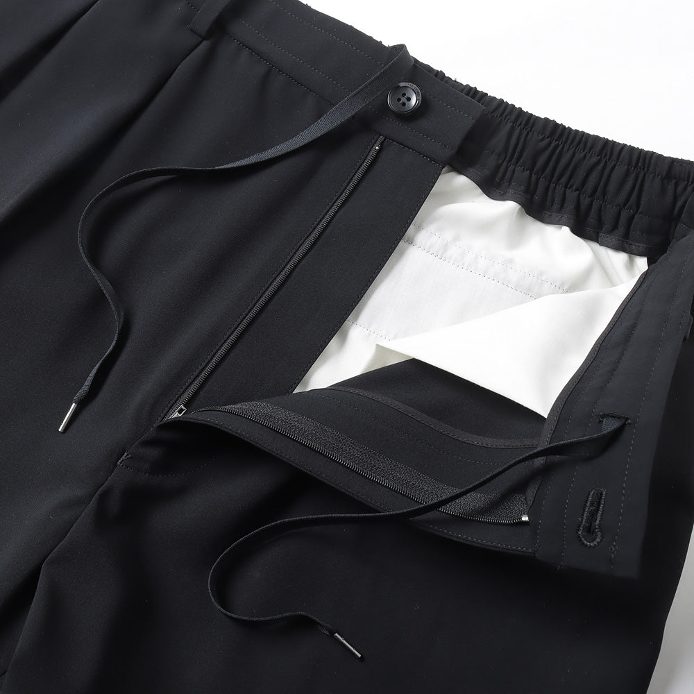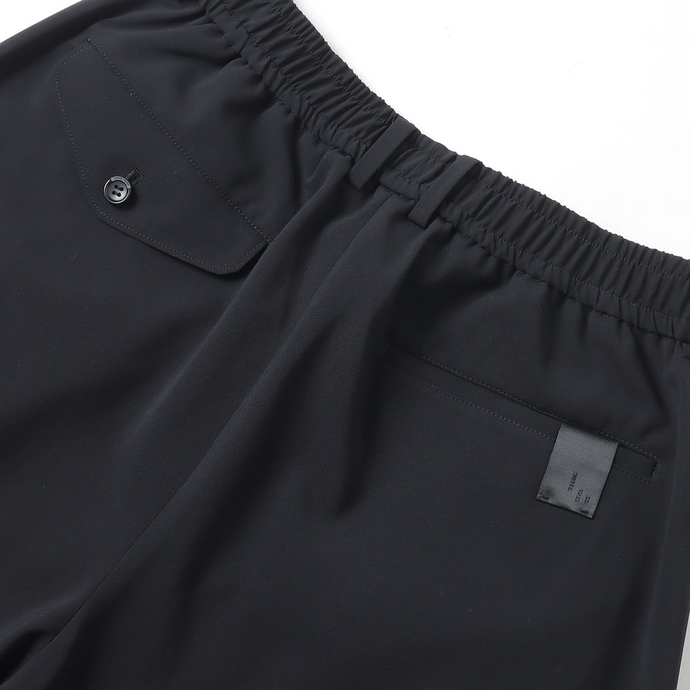 ・ウエストにはゴムの他、ドローコードを配することで細やかなサイズ調節が可能に。ヒップポケットに N.HOOLYWOOD COMPILE のアイコンであるブラックのブランドネームを配置。
