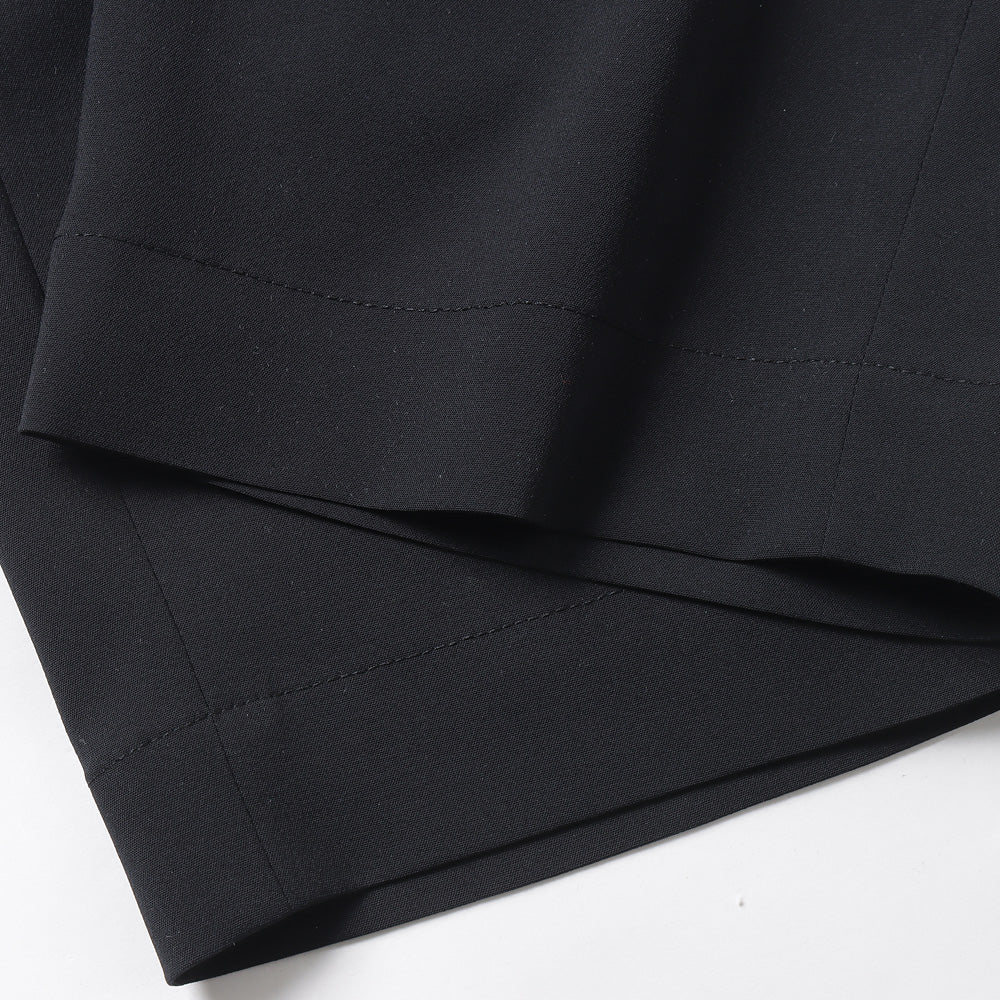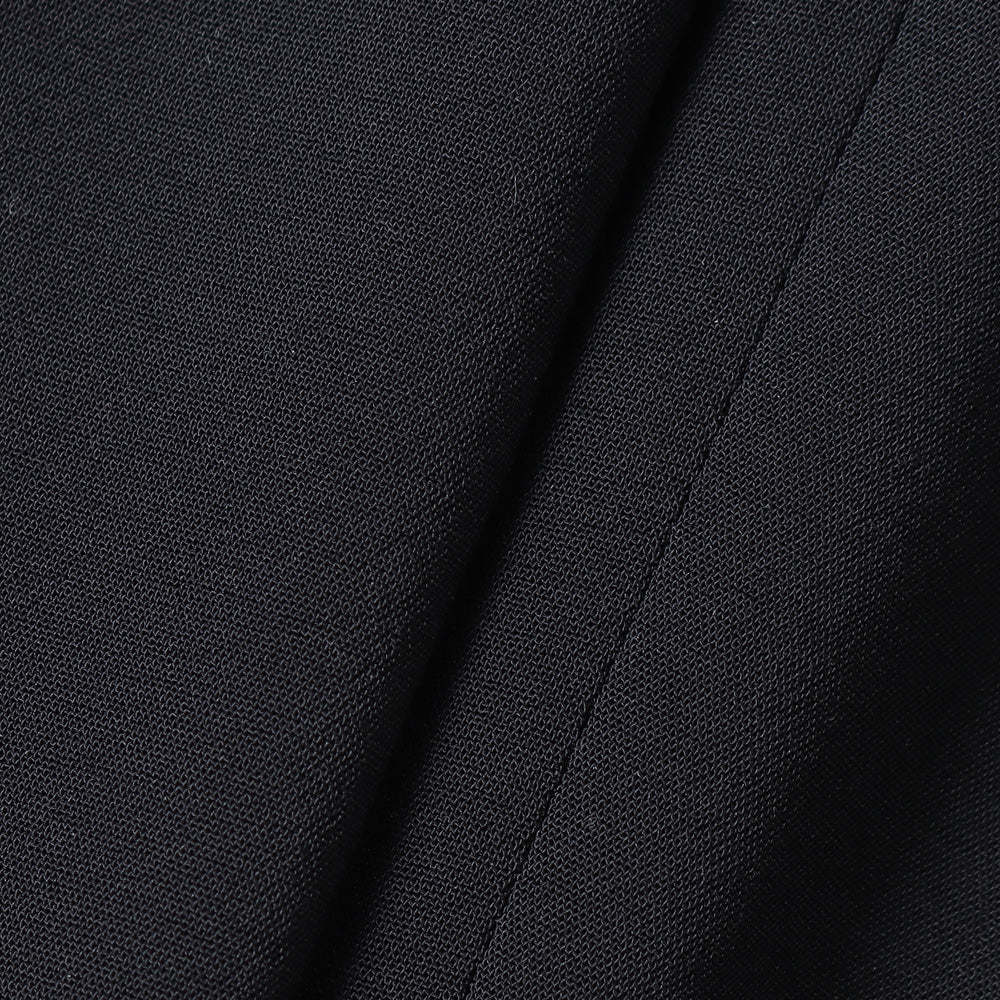 ・長繊維糸で織り上げた、平織の梳毛調ストレッチ合繊。ドライで優しいふくら み、糸が持つ特有のムラによる天然素材タッチが特徴。ウォッシャブルでシワになりにくいイージーケア素材。