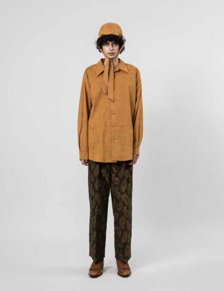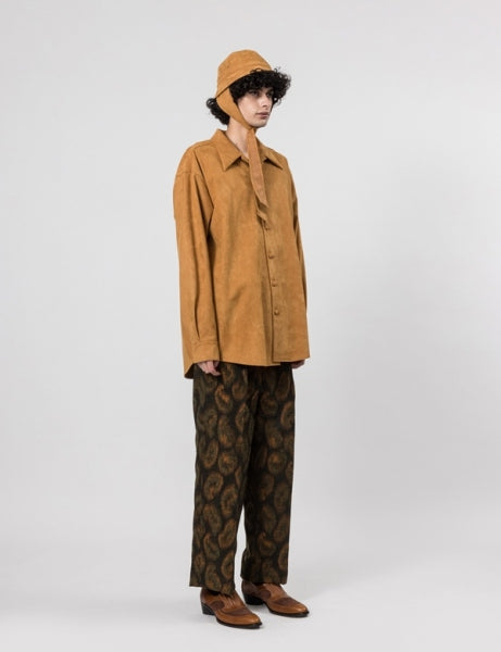 SYNTHETIC LEATHER OPEN COLLAR BIG SHIRT