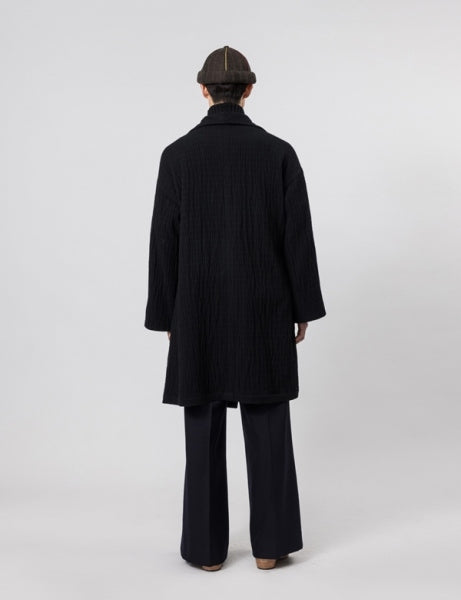 ウエストコードがアクセントの肉厚ウールの楊柳生地コート。