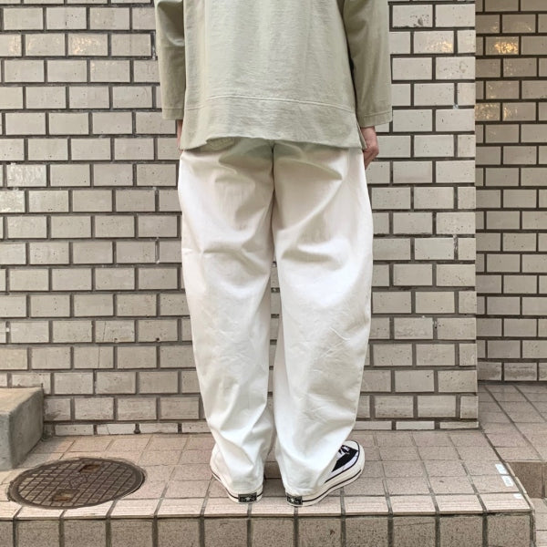 ワイドなシルエットで特に膝周りを太く、裾にかけてテーパードさせ、
